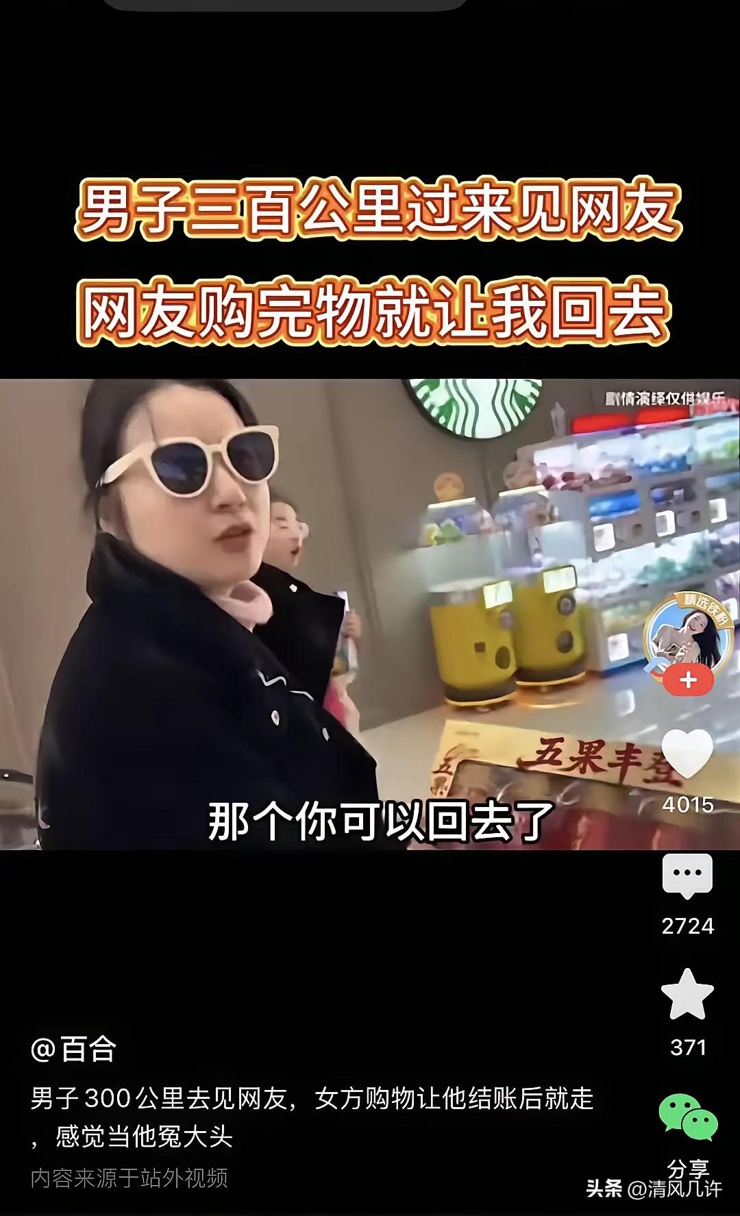 男子跑了300公里来见女网友。男人刚给女子购完物,女人就回头对他说,那个你可以回去了。男子有点懵逼,他问女人,你叫我回哪去女人说,我刚买了东西,天色也不早了, 男子为了这次见面提前一周就开始准备,他特意向单位请了两天假,出发前把车子加满油,还换上了干净的衣服,心里满是对线下相处的期待。 他和这名女网友在社交平台相识半年,日常聊天里女子总是语气温柔,还主动和他约定见面后一起相处两天,这些承诺让他认定这段感情是双向的奔赴,也让他愿意为这次见面付出全部的诚意。 三百公里的路程他全程没有停歇,心里只想着尽快见到屏幕那头熟悉的人,抵达约定地点后,他第一时间联系女子,对方没有过多寒暄,直接提出要去超市采购生活用品。 男子没有丝毫犹豫,跟着女子走进超市,全程配合对方挑选商品,女子将零食、护肤品、日用品逐一放进购物车,他都默默跟在身后,没有提出任何异议。 结账时男子主动拿出手机支付,这笔开销对他来说不算小数目,可他觉得为了在意的人花钱理所应当,也坚信接下来会有好好相处的机会。两人提着采购好的物品走出超市,男子还在规划后续的行程,女子却突然停下脚步,说出了让他措手不及的话。 男子完全无法接受这样的安排,他反复追问女子,自己驱车三百公里专程赶来,还按照约定付出了时间和金钱,怎么能在短短几十分钟内就被要求离开。女子面对质问没有丝毫愧疚,反而态度强硬地重复让他返程,还让他回家等待消息,完全否认了之前做出的承诺。 男子这才彻底清醒,自己从一开始就被对方算计,所谓的网恋相处不过是对方寻找免费买单者的借口,女子从见面开始就没有真心相处的想法,所有的温柔和约定都是为了让他心甘情愿付出。 他看着女子想要拎着自己购买的物品离开,心里的委屈和愤怒瞬间涌了上来,他上前拿回属于自己付费的商品,不愿让自己的诚意变成别人肆意索取的资本。 女子看到男子拿回物品,当场变了脸色,开始指责男子小气刻薄,完全不顾及自己先违背约定、利用他人真心的事实。 男子没有再和对方过多争执,他带着东西转身离开,三百公里的奔赴换来一场算计,满心的期待变成彻底的失望,返程的路上他心里满是苦涩,也为自己盲目付出的真心感到不值。 这段现场的画面被路人记录下来发布到网络,很快引发大量网友的关注和讨论。 很多网友都为男子感到心疼,大家指责女子利用他人的感情谋取利益,消费别人的诚意毫无底线,也提醒所有身处网恋中的人,要学会分辨真心与算计,不要让自己的真诚被别有用心的人利用。 也有网友结合自身经历分享看法,大家普遍认为,真正的感情从来不是建立在物质索取之上,无论是线上相识还是线下相处,尊重和真诚都是最基本的底线,一味索取、毫无真心的相处模式,从一开始就注定不会有好的结果。男子拿回自己购买物品的举动得到多数人的支持,坚守底线、不纵容算计,才是对自己最负责的态度。 这件事没有复杂的情节,却赤裸裸地展现出网络交往中最现实的一面,有人带着真心奔赴相遇,有人抱着算计利用感情。 三百公里的路程丈量不出人心的温度,购物的账单也换不来真诚的回应,这场荒唐的奔现经历,给所有期待网络缘分的人敲响了警钟。 网络拉近了人与人之间的距离,却也掩盖了人心的复杂,真心待人没有错,可在付出真心之前,一定要看清对方的本质,守住自己的底线。真诚永远是感情的基石,不被算计消耗,不被利用伤害,才能在相遇中守护好自己的初心。 各位读者你们怎么看?欢迎在评论区讨论。