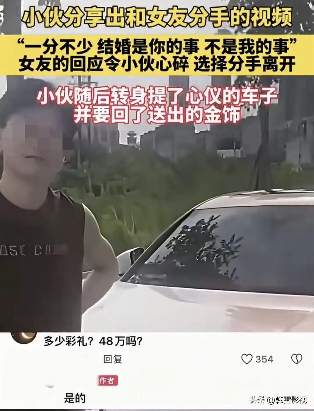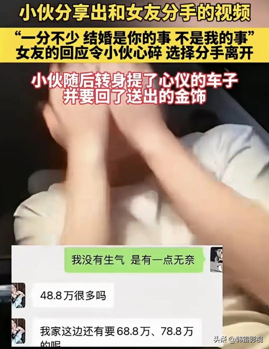 谈崩了!女友一句“结婚是你的事,不是我的事”,我当场心碎 “48.8万彩礼,一分不能少。” “借钱?那也是你还,我肯定不还。结婚是你的事,又不是我的事。” 这句话,像一把刀,直接捅进了我们6年的感情 事情是这样的。 我和女友谈婚论嫁,本以为水到渠成的事,谁知道在彩礼这一关,直接谈崩了。 她开口就是48.8万,我整个人都懵了。 “你家那边彩礼这么高吗?”我问得小心翼翼。 她倒是理直气壮:“我们家这边还有要68.8、78.8万的呢!” 我没生气,只是无奈。谁家能一下子拿出这么多钱? 我试着商量:“那要不,咱们先借点钱,婚后一起还?” 我想的是,只要咱们俩一条心,债务慢慢还,日子总能过下去。 结果她一句话,直接把我打醒了: “我肯定不还啊,我为什么要还?结婚是你的事,不是我的事。” 那一瞬间,我竟然不知道说什么好。 6年了,我以为我们是一起的。 结果在她眼里,结婚只是我一个人的事? 更扎心的还在后面。 她说这话的时候,语气特别理所当然,仿佛在说“今天天气不错”一样轻松。 我突然想起来,她家那边不仅不出嫁妆,还要求男方全包。 也就是说,这48.8万就是纯纯的“进门费”,跟以后的日子怎么过,没有一点关系。 我脑子里开始算账:彩礼48.8万,加上三金、酒席、婚庆、婚纱照……没个七八十万根本下不来。 就算借到钱结了婚,婚后呢?她明确说了不还债,那不就是我一个人背着几十万的债,养着这个家? 越想越心寒。 6年的感情,在谈婚论嫁这一刻,被她亲手撕得粉碎。 最后我提了分手。 她可能以为我只是说说而已,毕竟6年了,我从来都是让步的那一个。 但这次不一样。 我转身就去提了一辆车,心仪已久的那款。 还问她把我送的金首饰要了回来。 有人说我格局小,分了手还要往回要东西。 我想说的是:不是钱的事,是态度的事。 你把我当提款机,我就把账算清楚。 这事儿发到网上后,评论区炸了。 有人说我做得对: “至少车是自己的,冲那句‘结婚是你的事不是我的事’,换我我也不结。” “婚姻是两个人筹资共同组建家庭,你不仅不出资,还要从男方身上挖一坨,这种女人早点远离。” 也有人分享自己的经历: “我前年结婚,彩礼10.99万,岳母原数退回,只承担了酒席钱。老婆刚坐小月子,岳母第一时间过来照顾,红包都不收。娶妻得娶贤,否则糟心一辈子。” “我恋爱时给了女友3万,结果她买了新房的所有电器,还买了戒指。坐标新疆乌鲁木齐,我们这边不要彩礼。真理解不了那种把结婚当买卖的风气。” 说实话,分手那天晚上,我一个人在车里坐了很久。 不是后悔,是心疼。 心疼这6年,心疼自己一直以为遇到了对的人,结果在钱面前,感情这么不堪一击。 可转念一想,也庆幸。 庆幸在领证之前看清了这一切。 如果真结了婚,每天面对一个把“你的事”和“我的事”分得这么清的人,那日子该有多难熬? 有人说我太冲动,48.8万也不是不能商量。 可我想说,这事儿从一开始就不是48.8万的事。 是她那句“结婚是你的事,不是我的事”,让我彻底明白了: 在她心里,我们从来就不是“我们”。 彩礼是面镜子,照出的是两个人的三观。 可以谈钱,但不能只谈钱。 可以现实,但不能太算计。 如果婚前就因为钱划清界限,婚后只会更计较。 如果连“一起还债”的共识都达不成,还谈什么“风雨同舟”? 所以,这婚,我不结了。 这车,我开走了。 问大家一个问题: 如果你谈婚论嫁时,对方说“结婚是你的事,不是我的事”,你会怎么做? 评论区见。 为什么现在结婚彩礼越来越高