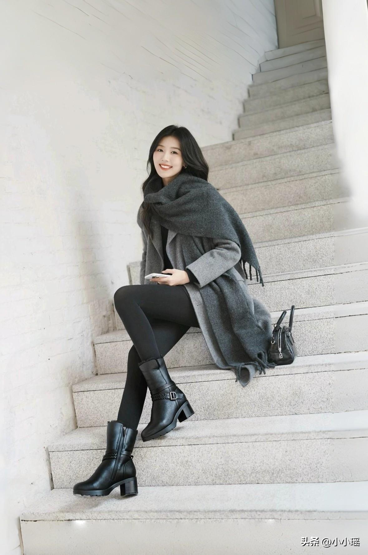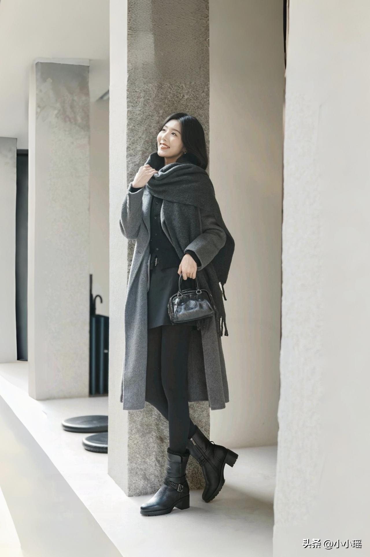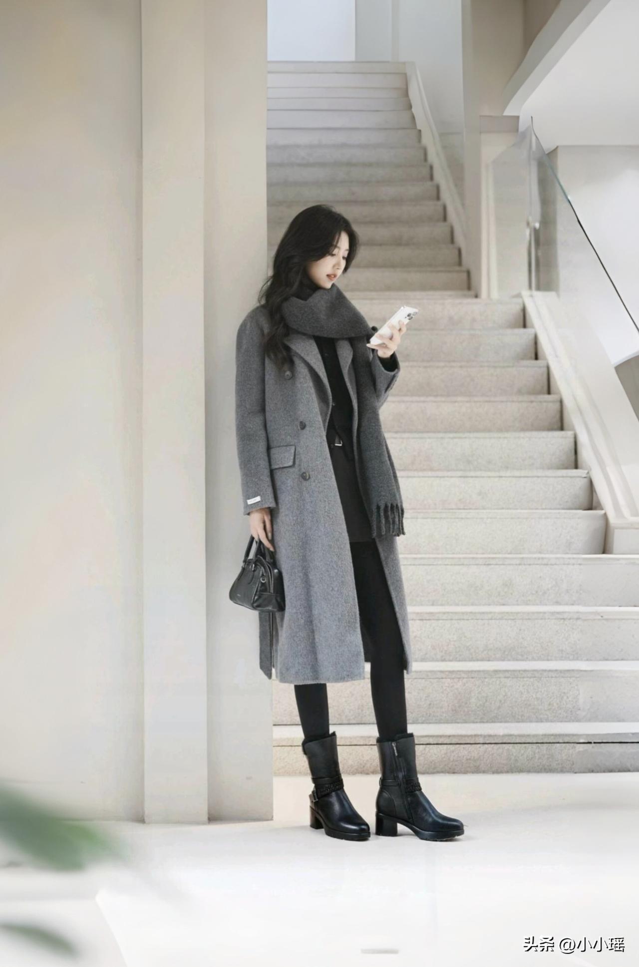 分享御姐穿搭 灰色大衣配厚黑美学,外加皮靴,保暖又靓丽,潮流永不过时,你觉得呢,