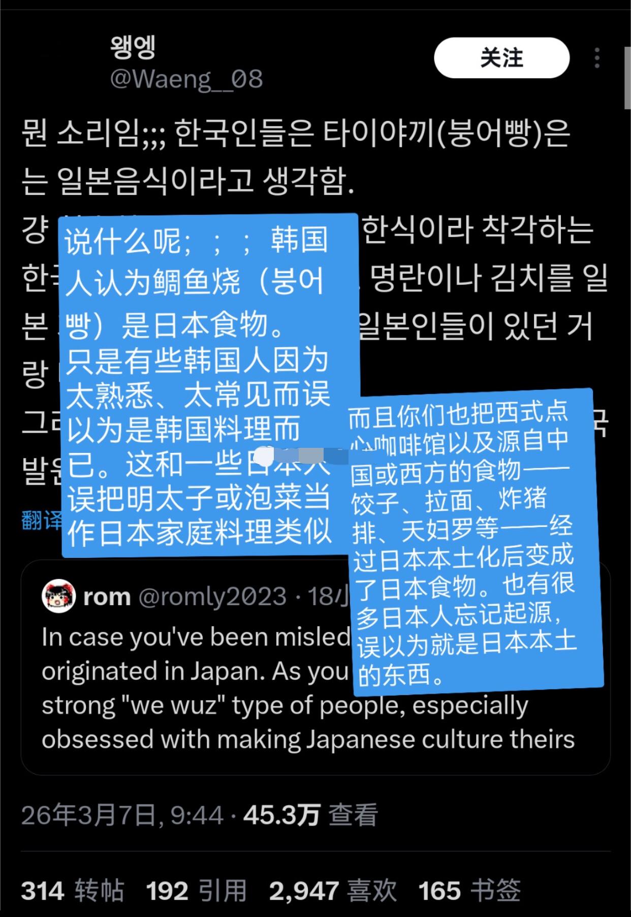 外网上日本人“讨伐”韩国偷日本的鲷鱼烧、寿司,而韩国人则“抨击”日本照样偷中国的