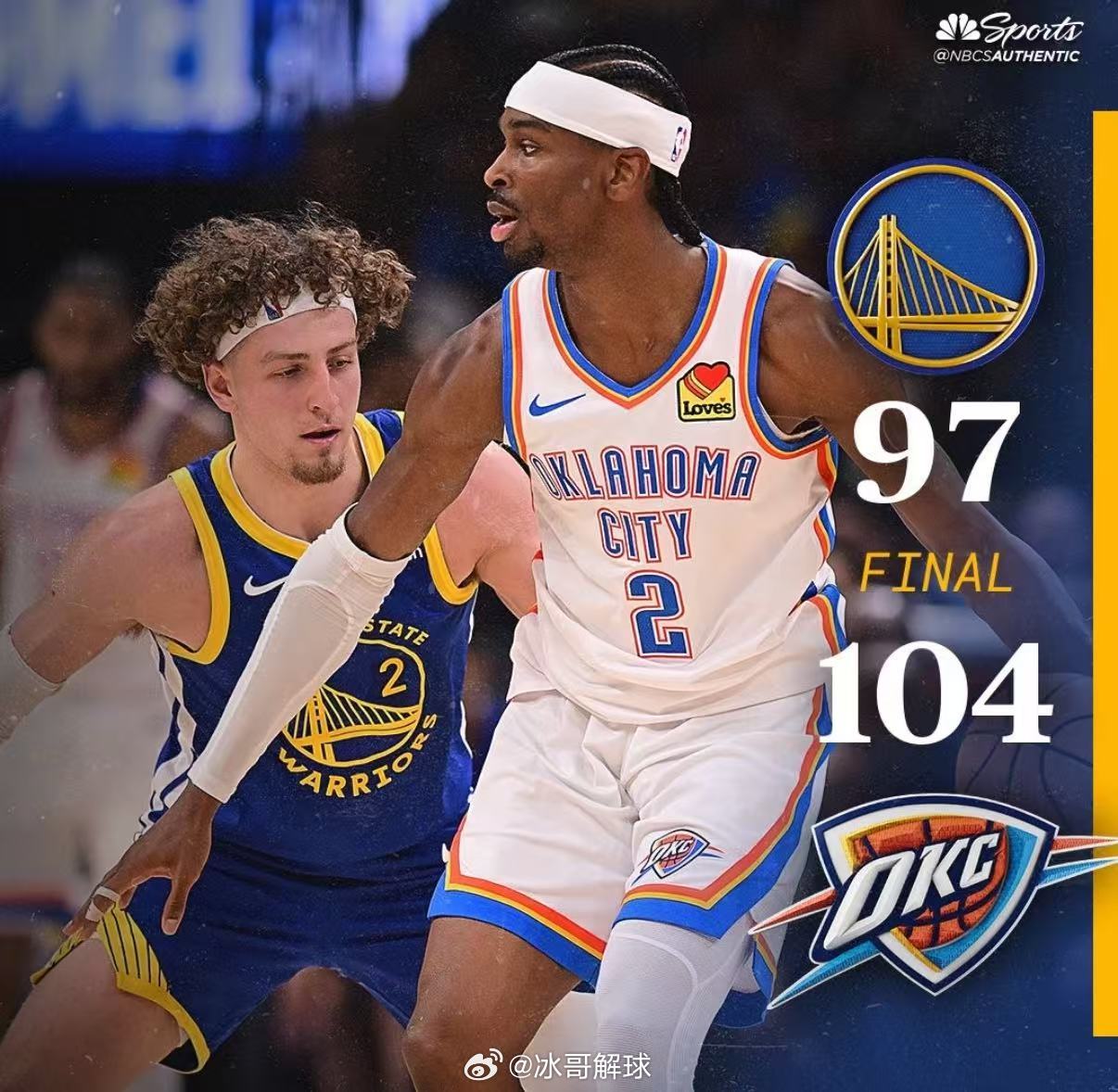 勇士vs雷霆雷霆104-97击败勇士,豪取5连胜稳居西部第一。亚历山大贡献27分5篮板5助攻,末节关键三分锁定胜局。勇士残阵拼至最后,桑托斯22分11篮板,波杰姆斯基17分,无奈遗憾落败。
