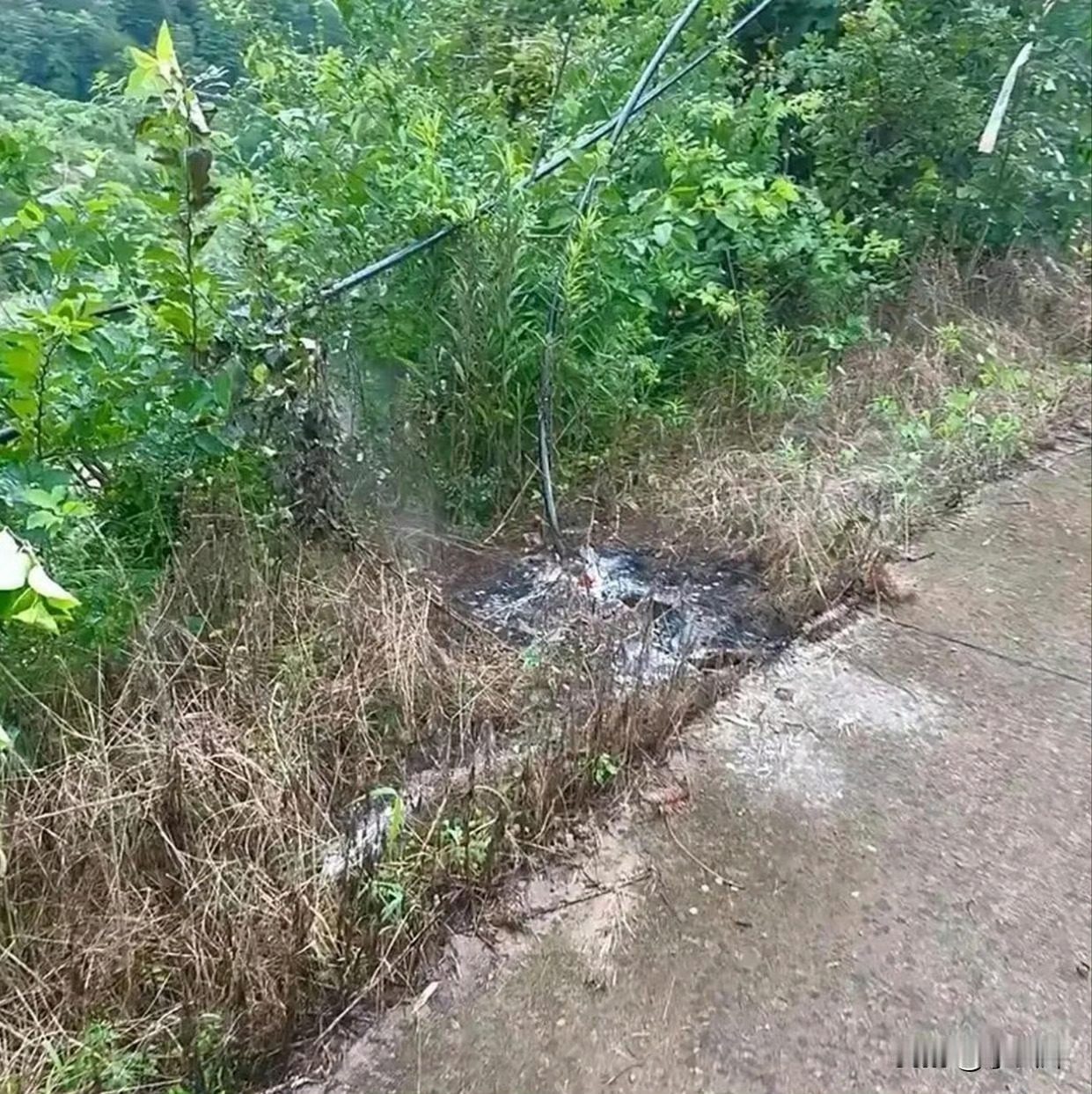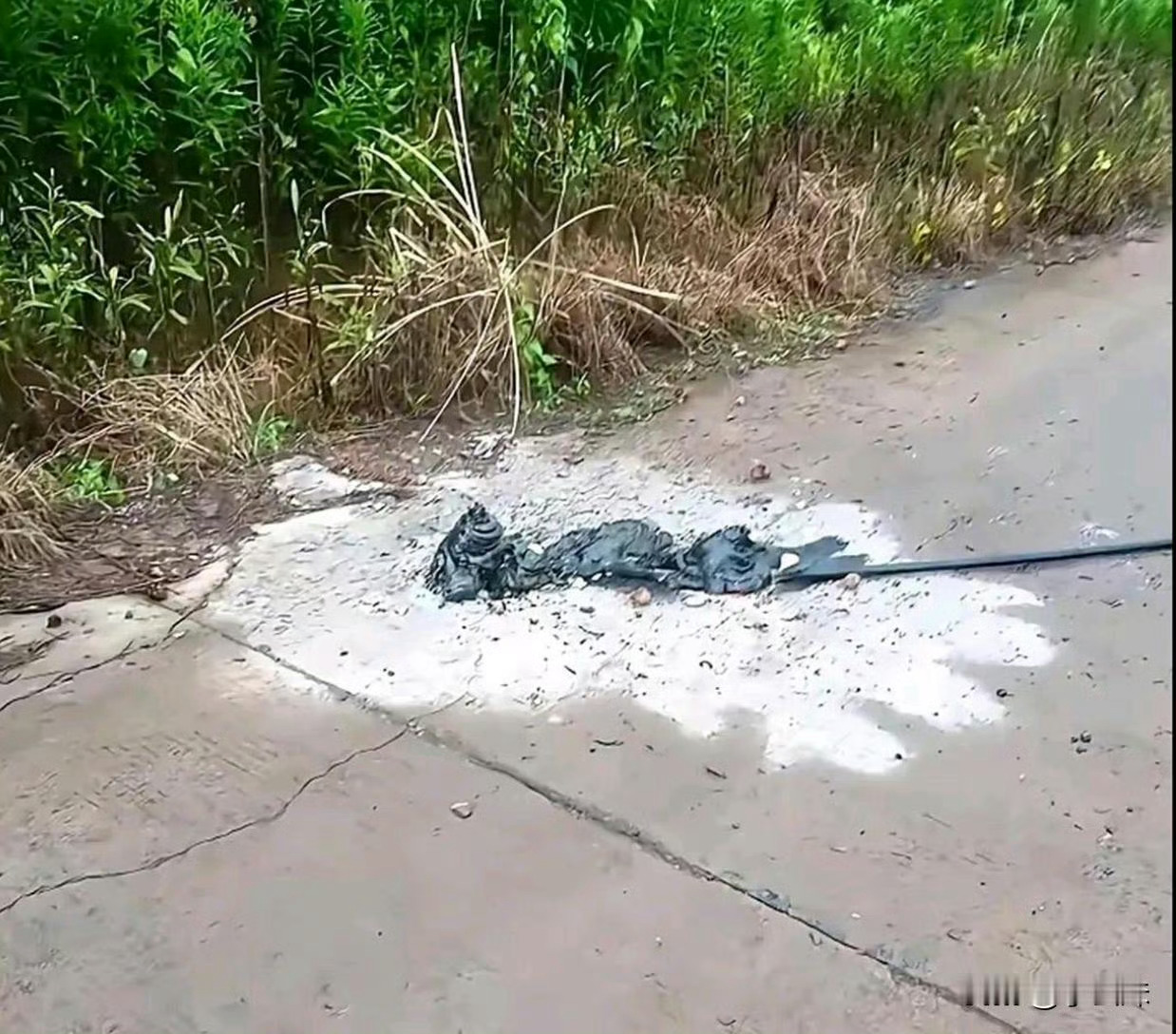 高压电的威力真是吓人啊,水泥都融化了