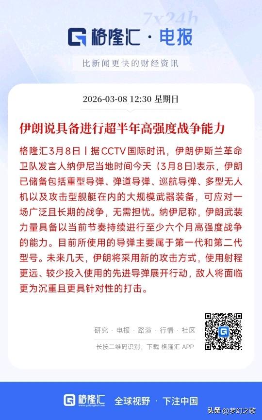 伊朗还能坚持超半年的战争能力,这次该特朗普难受了 特朗普早就表示会在几周内完成伊朗战争,而伊朗表示还能坚持超半年。特朗普这就难受了,因为战争霍尔木兹海峡的封锁,原油的价格疯狂上涨,布伦特原油已经涨到了93.47美元,原油的上涨也会增加通胀的上涨。 如果伊朗还能坚持一个月,油价稳在100美元/桶,那么美国CPI直接多涨0.6-0.7个百分点(从2.4%→3%+),这就会放缓美联储降息的速度,直接导致经济的影响,特朗普就会非常的难受。 想想如果拖个半年,美国CPI会涨到什么样子?不过伊朗也很难坚持半年,没有原油的出口,伊朗半年内经济都会处于崩溃边缘。