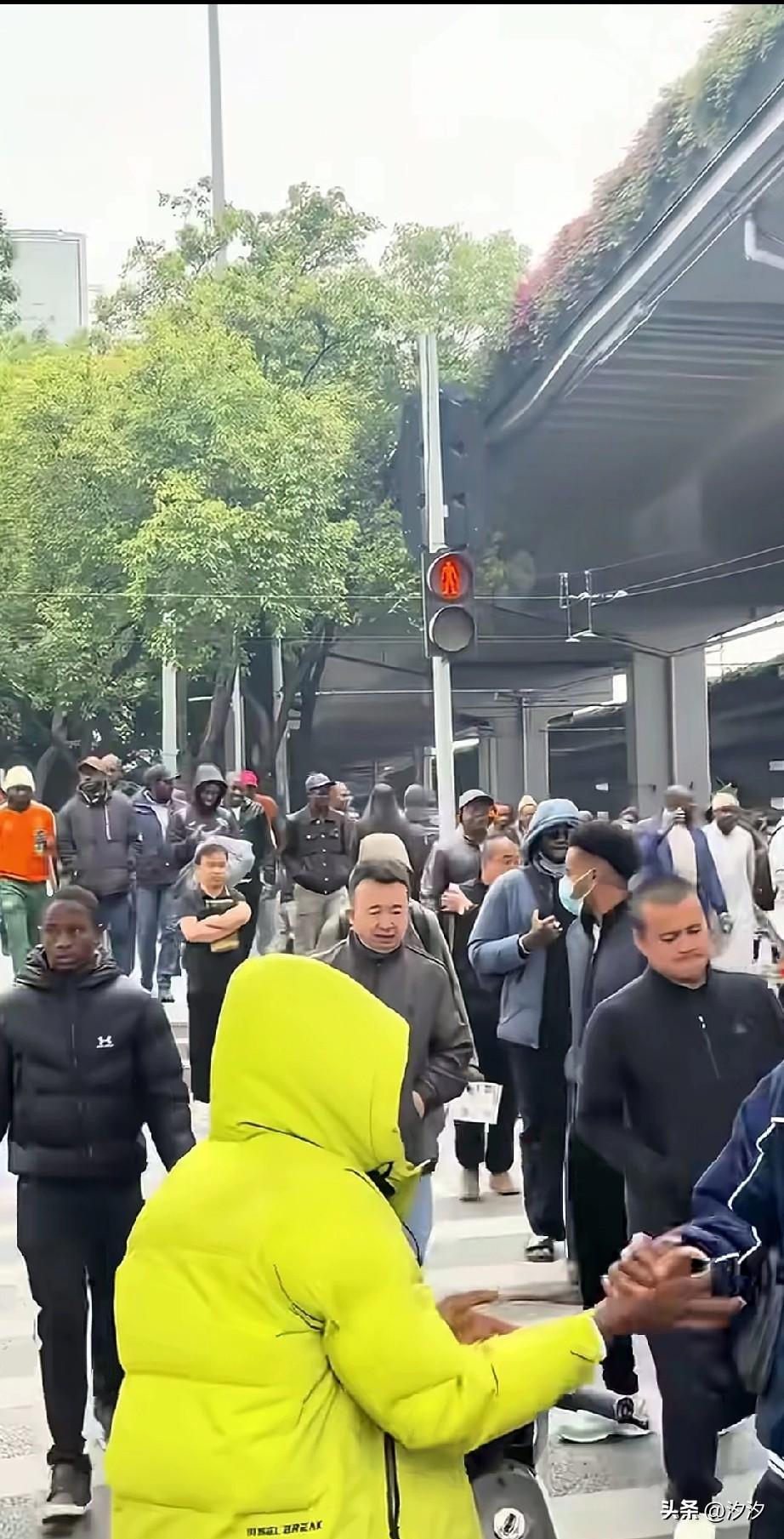 这里居然是广州, 你敢相信吗? 远远望去全部都是黑人, 中国面孔在里面都是少数族裔, 而且红灯他们照样过斑马线, 并不是只有国人才会闯红灯, 老外也是会闯红灯的, 乍一看还以为到了非洲, 实际上还是在广州, 广州的包容性真的很强, 大家觉得呢?
