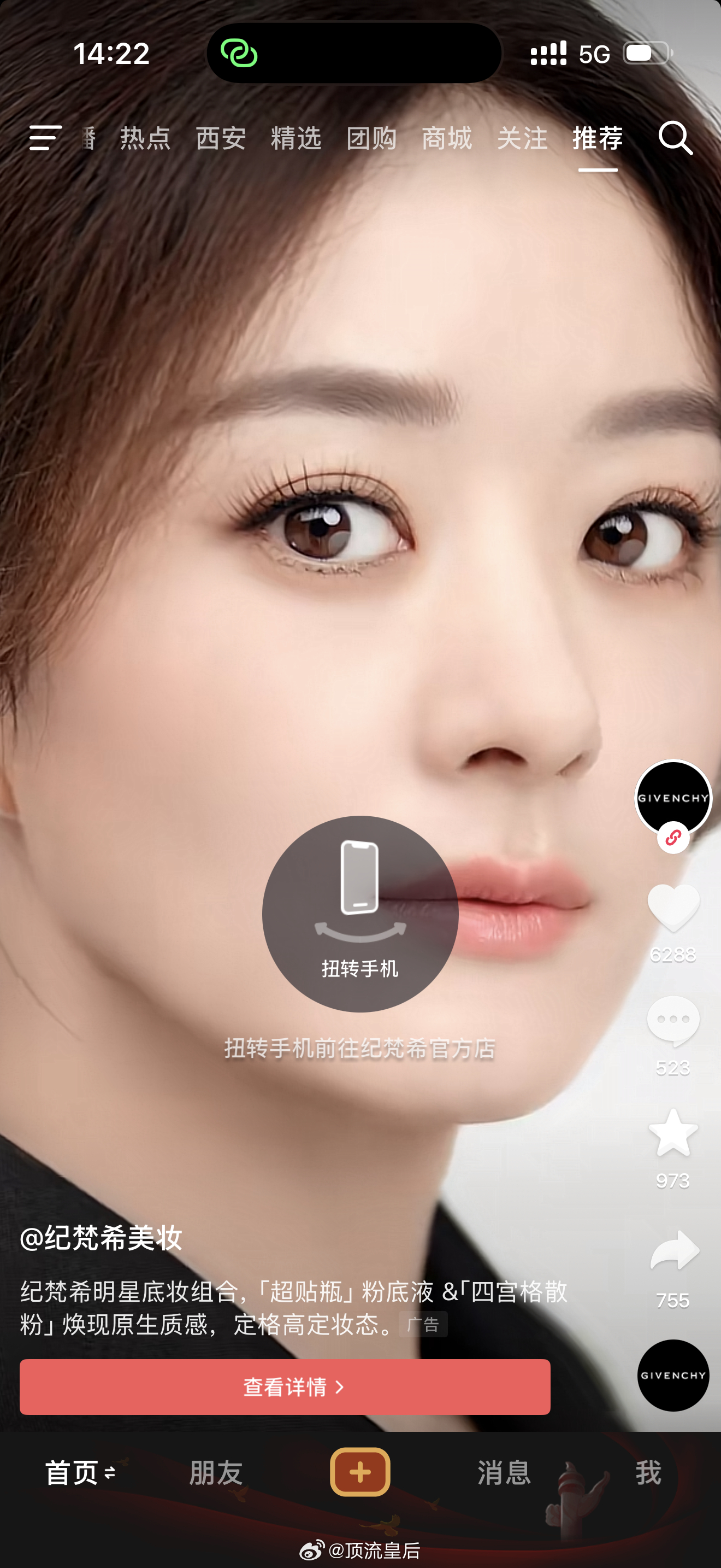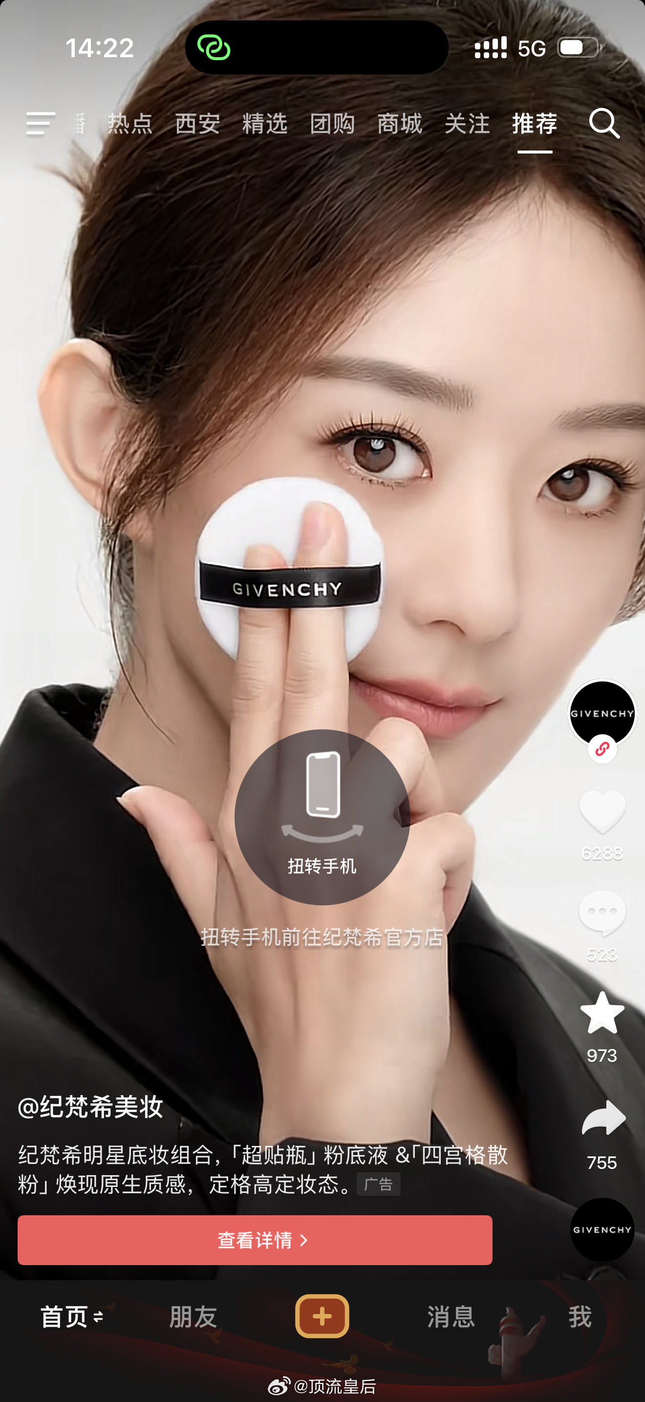 赵丽颖抖音纪梵希微博开屏,看到想买吗?