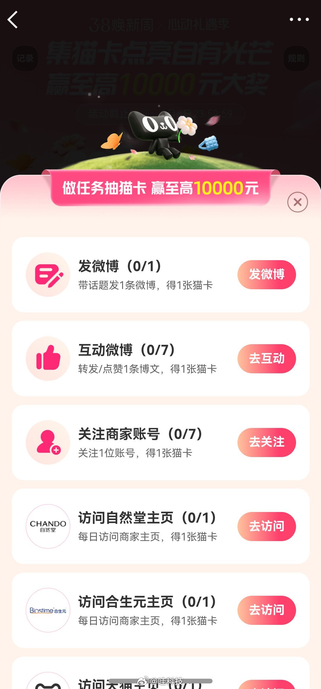 全微博开抢百变之光 祝各位女神节快乐 三八焕新周集卡抢红包终极攻略来啦!亲测做任务、访品牌主页、互动博文都能抽卡,万能卡还能补缺口~划重点:今日13:00-20:08轮开奖,集齐从容/明朗/温柔/鲜活四光卡必得红包,前7轮各抽1位2026元锦鲤,20点压轴1万元大奖!16位明星空降期间,稀有明朗之光掉率飙升,趁现在赶紧冲,手慢无网页链接