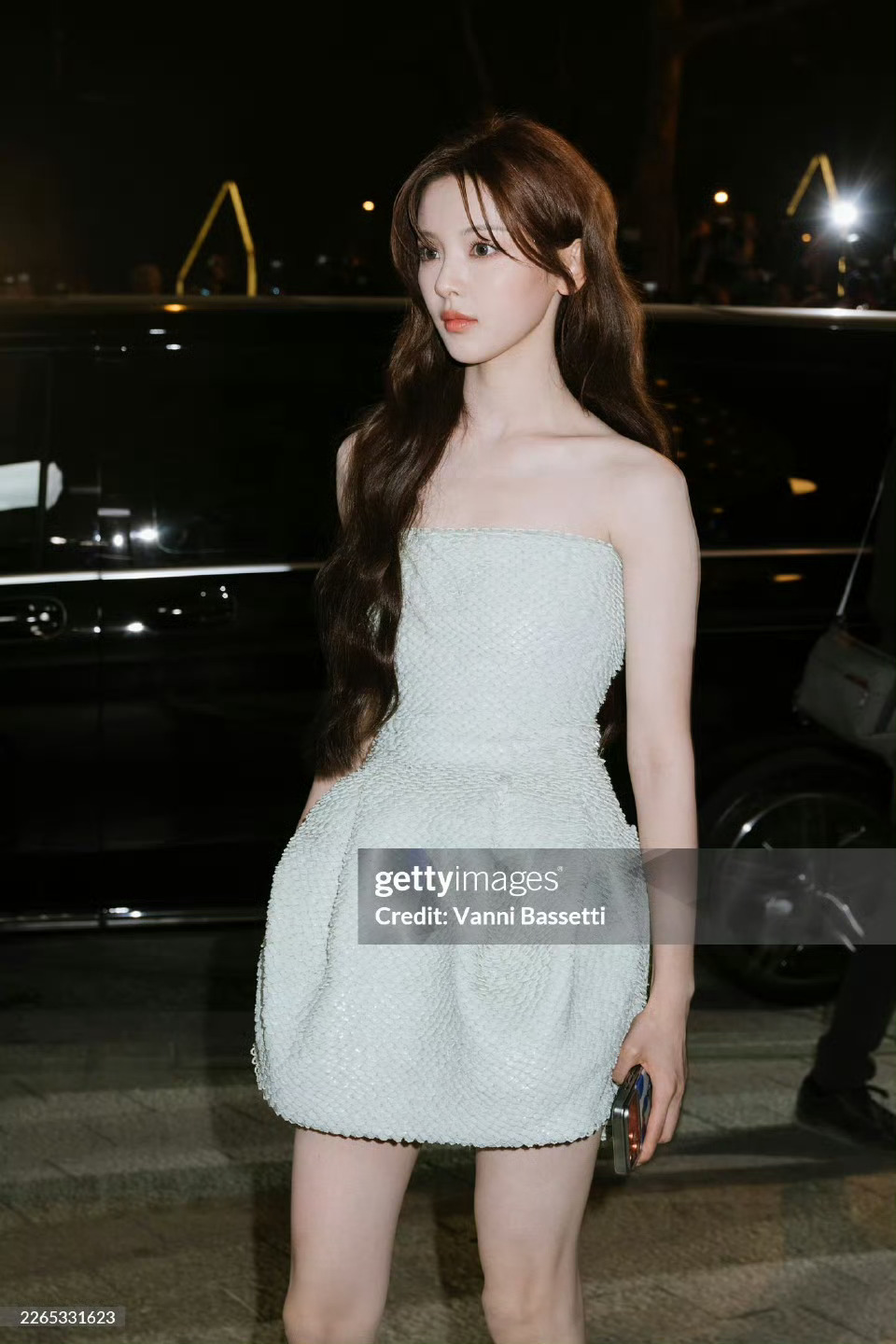 感受一下杨超越巴黎时装周惊人的G社生图 杨超越抹胸鳞片裙