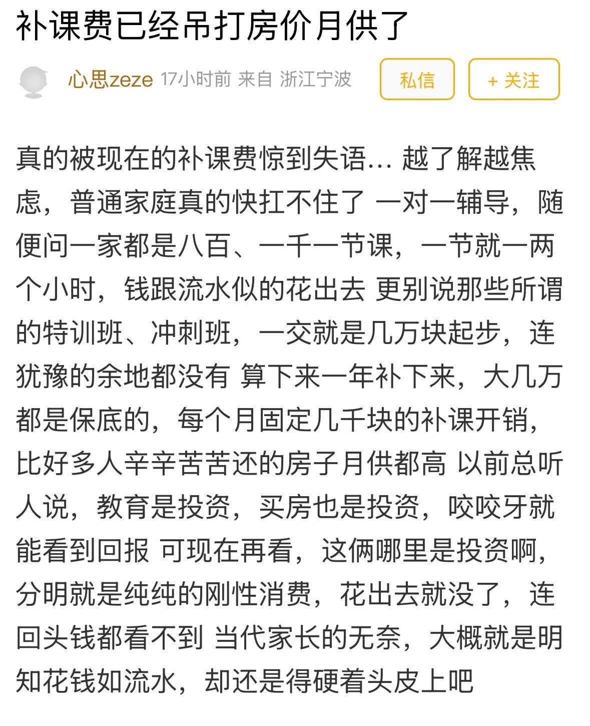 刚开学宁波有家长直呼每月补课费远超房贷 刚开学,宁波有家长直呼每月补课费远超房贷!网友点破:补课背后是父母的不甘
