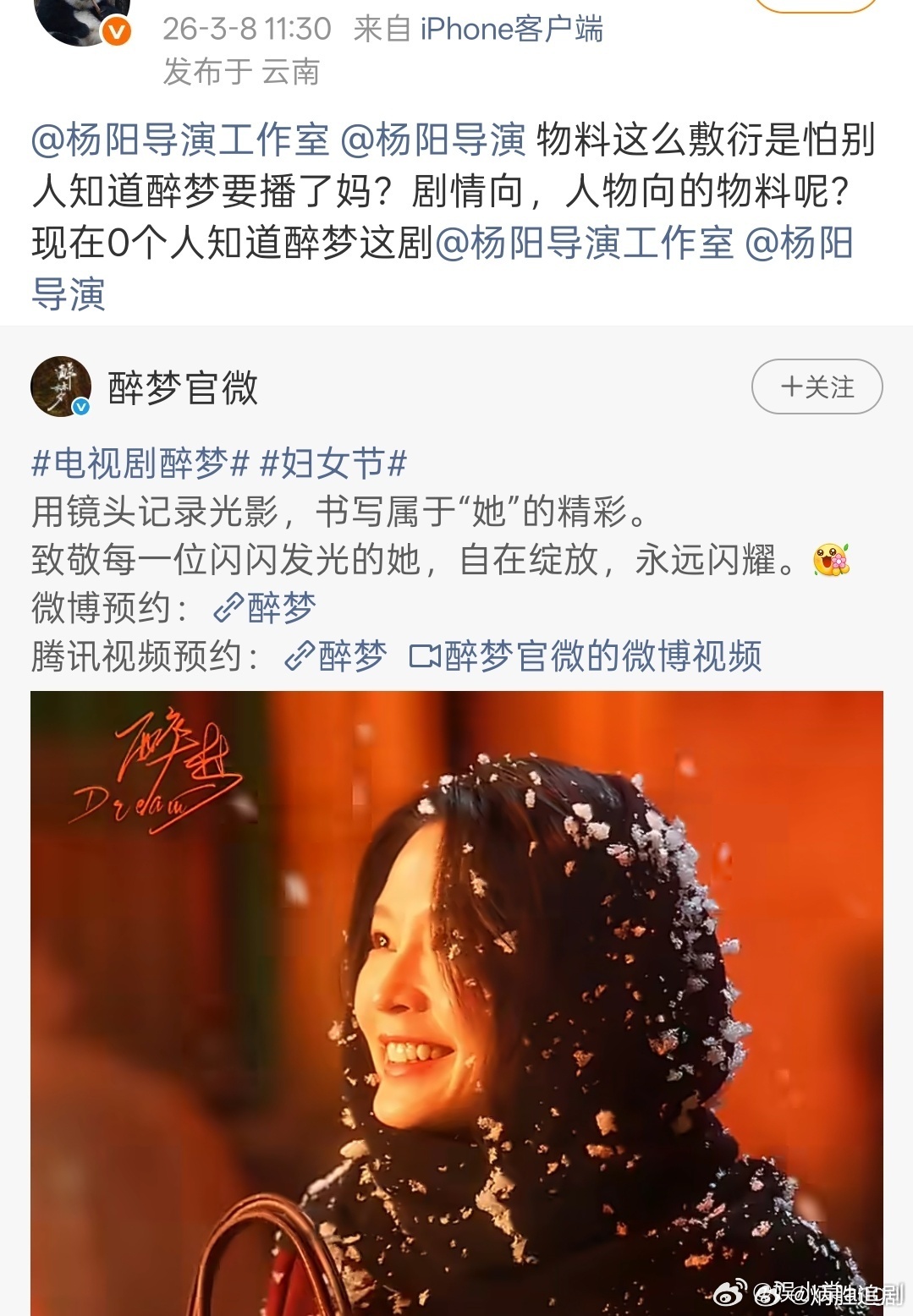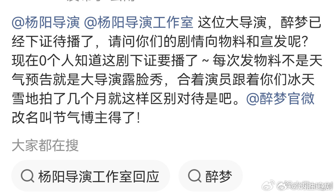 疑似小狮子粉丝发现杨阳导演只置顶了《玉兰花开》和《隐身的名字》,没置顶刘诗诗《醉梦》,有点不满,刚准备维权,导演马上就把《醉梦》也置顶了