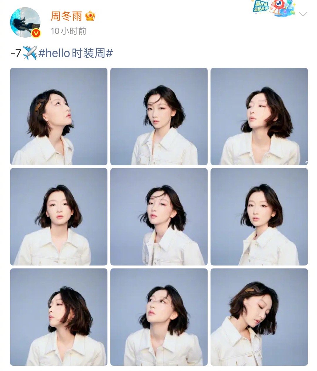 周冬雨出发巴黎时装周 全球品牌代言人周冬雨启程巴黎时装周,白色牛仔套装搭配发卡,可爱的姐姐多来点!
