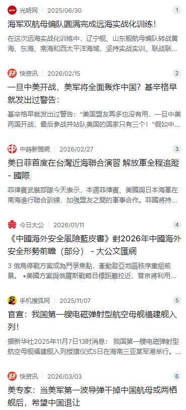中美开战,一定不会在中国的国土,也不会在美国的国土,如果中国和美国开战,一定会在第三国发生,因为中国和美国都是核大国,谁也承受不了核打击。 麻烦看官老爷们右上角点击一下“关注”,既方便您进行讨论和分享,又能给您带来不一样的参与感,感谢您的支持! 这两年,大伙儿私下聊天,难免会嘀咕一句:中美要是真杠上了,会不会打起来?打起来又会在哪儿打?有一种分析听着挺在理,说中美都是核大国,手里攥着能把地球犁一遍的家当,谁也没胆子把战火引到自己家里。所以,真要动手,战场大概率会选在第三国,比如咱们周边的海域,或者太平洋上的某个角落。 这可不是瞎猜。你看看美国这几年的动作,拉着日本、菲律宾在南海和台海周边可劲儿折腾,三天两头搞军演 。这剧本看着眼熟不?跟俄乌冲突一个套路,自己躲在幕后递刀子,把盟友推到一线当“耗材”,想用这种“代理人”的方式消耗对手,既避免了和另一个核大国直接玩命,又能达到自己的战略目的。说白了,就是想在中国家门口复刻一场“别人家的战争”。 面对这种明摆着的阳谋,咱们肯定不能按着别人的剧本走。美国的如意算盘是在西太平洋给咱们画个圈,逼你在圈里跟他打,这个圈就是他们预设的“第三方战场”。但战场在哪儿,怎么打,从来不是一家说了算。 咱们这些年埋头干的一件事,就是打破这个规则。**2025年11月,一个重磅消息传来,我国第一艘电磁弹射型航母——福建舰,正式入列了** 。这可不是简单的“老三”,它带着全球顶尖的电磁弹射技术,意味着舰载机能满载燃油和弹药,更快速地起飞,作战效率直接拉满。福建舰的定位很明确,不是在家门口转悠,而是要走出去,在远海大洋上构建咱们自己的防御体系,把防御纵深往外推。你想在第三国设战场?那我就让你看看,在远海,我也有能力说了算 。 与此同时,咱们的“辽宁舰”和“山东舰”也没闲着。就在2025年上半年,双航母编队带着一帮“小弟”,浩浩荡荡地穿越岛链,在西太平洋搞起了实战化演训 。这可不是走秀,是真刀真枪地练侦察预警、练对海突击,甚至跟外军舰机面对面过招 。为什么非得跑那么远?就是要让官兵提前熟悉那片陌生海域的环境,适应外军高强度抵近侦察的压力。**说白了,就是提前“排雷”,提前“认路”,真到了那天,咱们才不会手忙脚乱。** 只有把太平洋的水搅热,才能不让对手轻易在那儿设局 。 美国想着让盟友卖命,可盟友也不傻。已故的美国前国务卿基辛格生前就点破过:别看美国盟友名单拉得长,真到了要跟中国玩命的时候,愿意出钱的都没几个,更别说上战场了 。理由特简单,中国是全世界一百多个国家的最大贸易伙伴,包括日本、韩国、澳大利亚这些所谓的盟友。让他们为了美国的战略,砸了自己家的饭碗?这账谁都会算 。 再说了,美国自己的专家也在那儿推演,说只要第一波导弹干掉中国一艘航母,中国就会退缩 。这种想法挺天真。现在的战争打的是体系,不是一两艘船。你炸我一个点,我全域的反制力量是吃素的?更何况,咱们的火箭军也不是摆设,那些被外媒反复提及的“航母杀手”东风系列,就是为了让任何想靠近的对手三思而后行 。美国自己也有人承认,真要打起来,他们在西太平洋的基地可能几个小时就瘫痪了 。 说到底,中美作为两个核大国,谁都清楚直接冲突的后果意味着什么。美国现在做的,就是拼命武装这些“棋子”,给他们递刀,让他们冲在前面 。菲律宾向美军新开放的基地,日本正在进行的军事松绑,都是这个大棋局的一部分 。 而咱们要做的,就是用更强大的海军,用更成熟的航母编队,去西太平洋这片蓝水里实实在在地站稳脚跟。只有当你的剑足够长,你的盾足够硬,才能让对方老老实实回到谈判桌上,而不是整天琢磨着在你家隔壁点一把火。这,就是2026年咱们看到的,一场没有硝烟却惊心动魄的战略博弈。