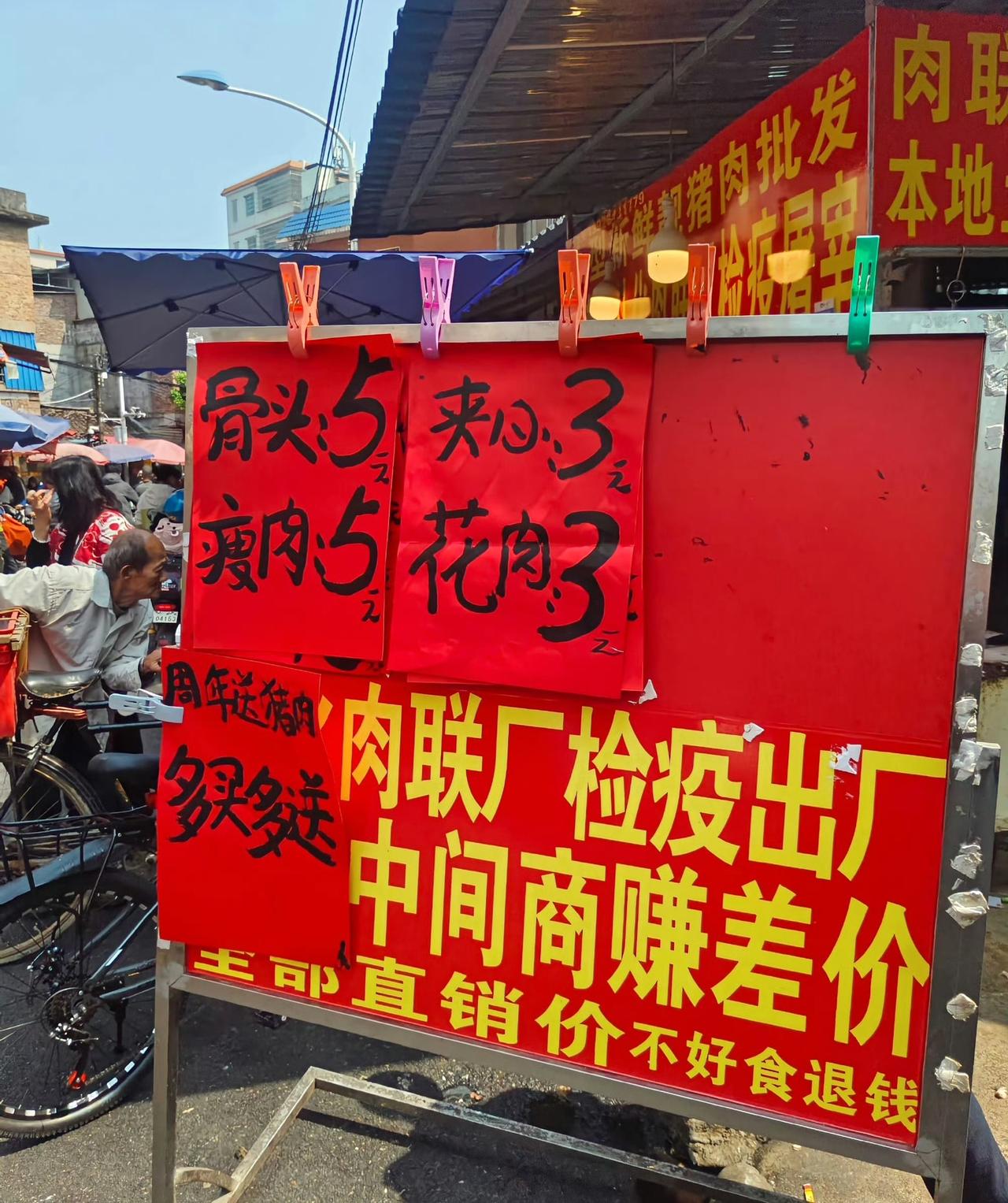 广洲从化一肉联厂直供猪肉,便宜的简直离谱,这让菜市场卖猪肉的贩子还怎么活?瘦肉 5 块,骨头 5 块,夹心肉 3 块,花肉3块。一网友买了,说和菜市场买的猪肉没什么差别,反正猪肉味都不浓郁,吃是没问题,也很新鲜。现在什么都搞直供,没有了中间商,菜市场肉贩危机来了。