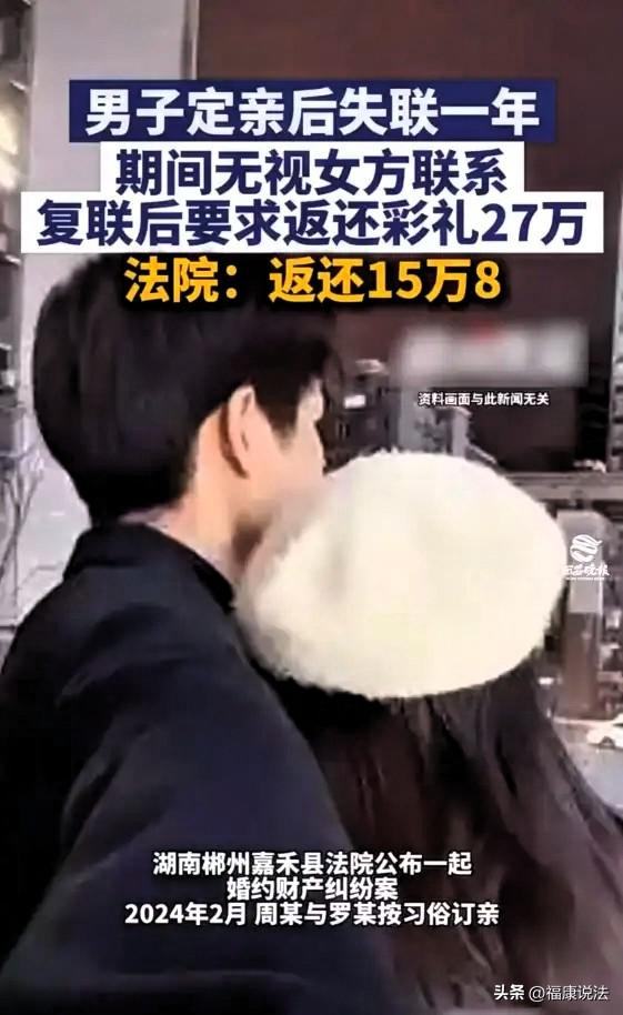 湖南嘉禾,男子相亲认识一女子,定亲时,给了女友199900元彩礼,还有价值23629元的四金,订婚后,男子出去创业,结果失败,他受不了打击,躲起来不愿见亲友,甚至和女友断了联系,失联近一年,一年后,男子又联系女友,给了她2个选择:要么登记结婚,要么退还彩礼。女友拒绝和他结婚,选择分手。不料,男子告上法院,要求女友返还27万余元彩礼等各项费用,法院判决有亮点。 周某怎么也没想到,自己当初一时的逃避,一年的时间,竟让20多万的彩礼打了折。 2023年春天,周某经人介绍认识了罗某,两人对彼此印象还行,感情进展得顺风顺水。 没过多久,周某就把见面礼、上门礼按习俗送了,情侣戒指也戴在了彼此手上。 到了2024年2月,定亲仪式热热闹闹地办了。 周某的母亲直接给罗某的母亲转了199900元的定亲礼金,两人的婚事也就定了下来。 周某觉得和女友婚都定了,便又花了23629元给罗某置办了“四金”,满心以为好日子就要来了。 定亲后,周某也一心想多赚点钱养家,便外出创业,本想赚笔钱风风光光娶媳妇,结果却栽了个大跟头。 创业失败的打击让他一下子蔫了,觉得没脸见亲友,更没脸面对罗某,索性来了个销声匿迹。 不管罗某怎么给他打电话、发消息,他都视而不见,硬生生断了联系,这一躲就是近一年。 转眼到了2025年1月,周某缓过劲来,才想起还有婚约这回事。 周某主动联系罗某,给她两个选择,要么领证结婚,要么返还彩礼。那小算盘打得噼啪响。 他从没想他的逃避,让未婚妻坐了一年冷板凳,人家心里会是什么感受? 面对周某这种破罐破摔的态度,罗某早已寒了心,她觉得在周某身上看不到希望,他消极的态度令她望而却步,以后和这种有困难就逃避的人过日子也没什么好果子吃,于是,罗某拒绝了周某这两个要求。 协商不成,周某一纸诉状告上法庭,张口就要回27万余元,谁能想到,周某竟然把酒席钱、小额红包都算进了彩礼里。 然而,法院可没有这么认为男子对于彩礼范围做了明确划分。确定了,定亲礼金199900元,以及四金、情侣戒指共2695元,共计226224元。 周某和女友订婚后又失联一年的做法太不地道。 定亲后因为创业失败就玩消失,把女方晾了一年,这对女方伤害多大啊? 女方满心期待着结婚,结果等来的是周某要么结婚,要么退彩礼的要求,换谁心里都不好受。 周某没等到满意结果,又跳出来要求罗某退还彩礼,有点不近人情。不过,从法律上讲,女方也不能一分不退,毕竟双方没领结婚证。 根据《民法典 婚姻家庭编的解释(一)》第5条规定,当事人请求返还按照习俗给付的彩礼的,如果查明属于以下情形,人民法院应当予以支持:(一)双方未办理结婚登记手续…… 意思就是,要是两人没领结婚证,一方给了彩礼,之后想要回来,法院会视情况支持。 本案中,周某和罗某没登记结婚,符合返还彩礼的法定条件。 但法院没全让女方返还,因为周某自己有错,他创业失败就失联近一年,对双方感情破裂负主要责任。 另外,女方也为婚约置办嫁妆,也花了不少钱,所以综合考量后,按70%比例让女方返还。 最终,法院判决:罗某返还周某彩礼158357元。 有人说,这事,女方没什么过错。等了一年空等一场,为了结婚也置办了嫁妆,花了不少心思和钱,名誉、时间都搭进去了,感情上受的伤害没法用钱算。 所以,法院没让女方全退,只退了大部分,就是考虑到男方的过错,给女方留了一部分当作补偿,合情合理。 法院的判决很公正,既让周某为自己的过错承担一定责任,也让女方没有遭受太大损失。 最后想说,感情不是儿戏,遇到问题要积极面对,不能逃避,不然,最后可能两败俱伤。