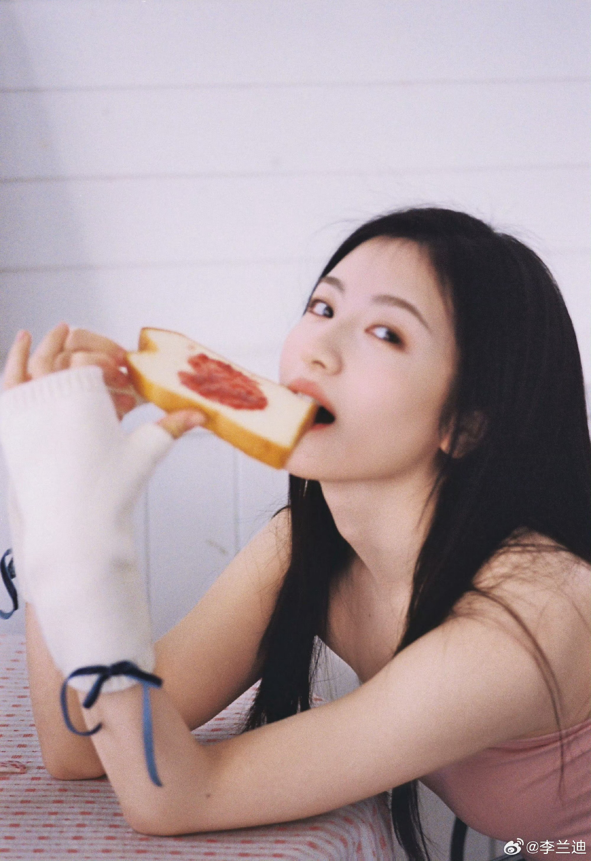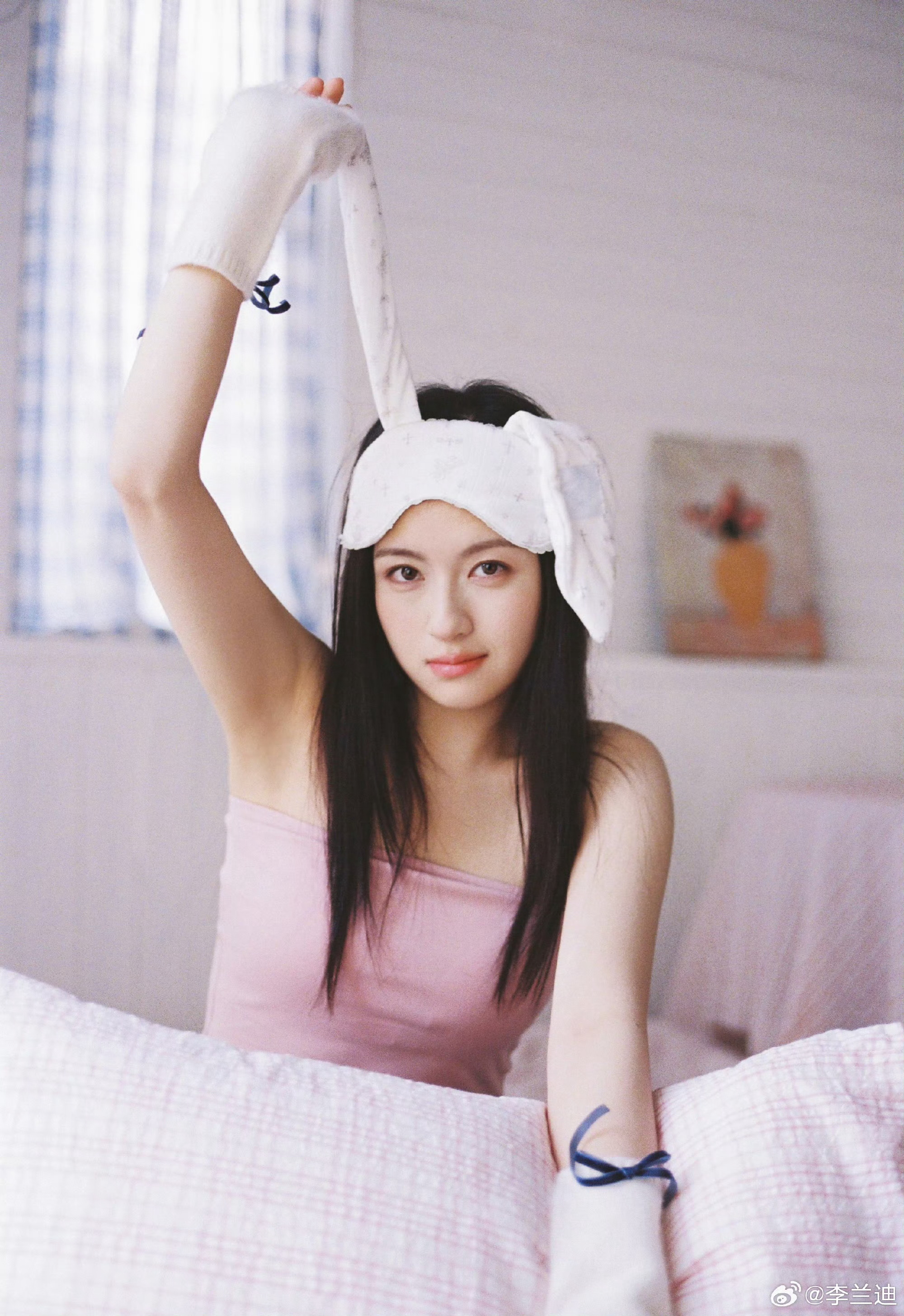 李兰迪 祝我们节日快乐李兰迪你是吃可爱长大的吗!举着爱心吐司的样子也太元气了,甜度直接超标!兔耳眼罩配粉色小吊带,居家松弛感拉满兰迪也节日快乐呀!