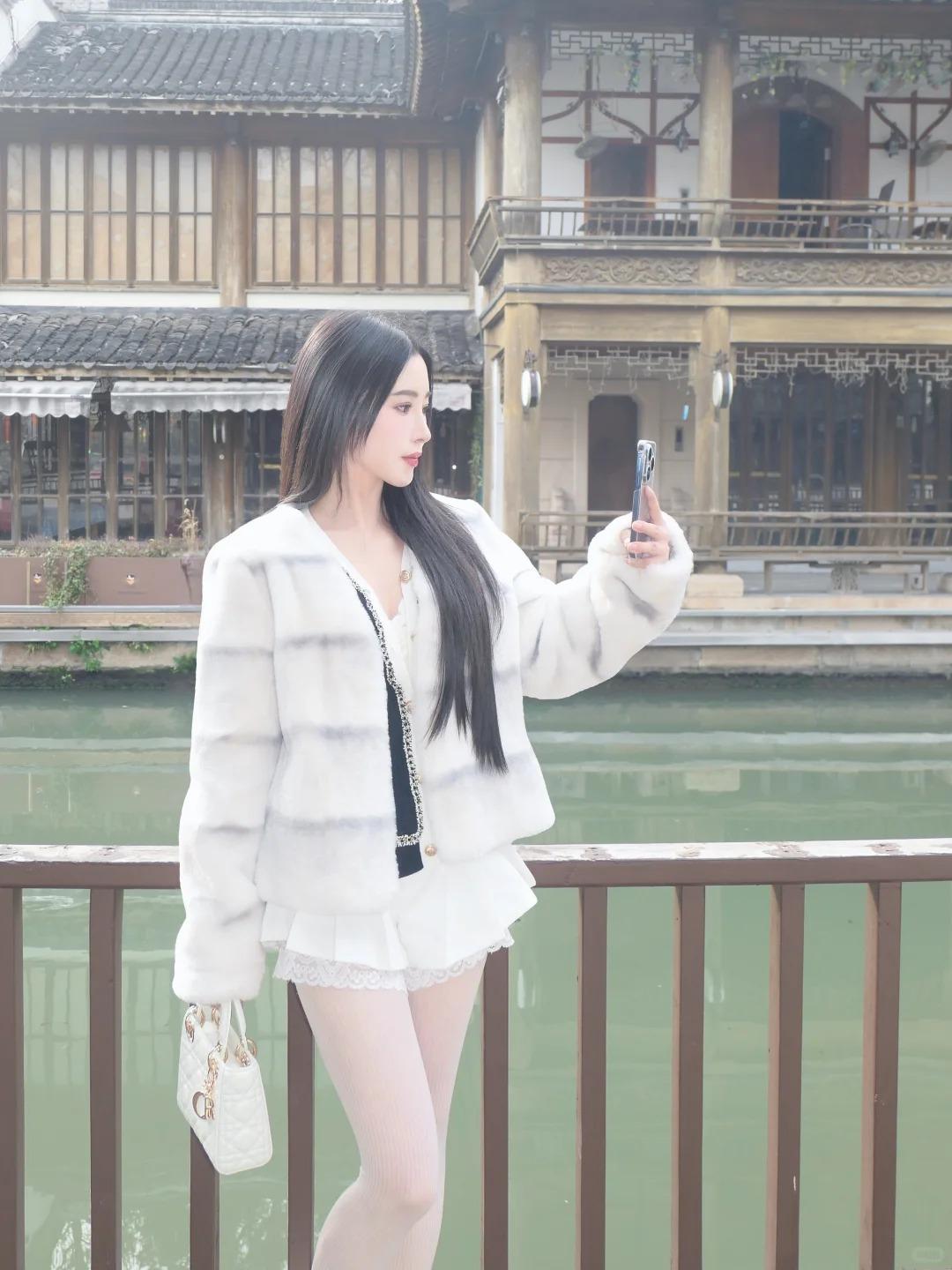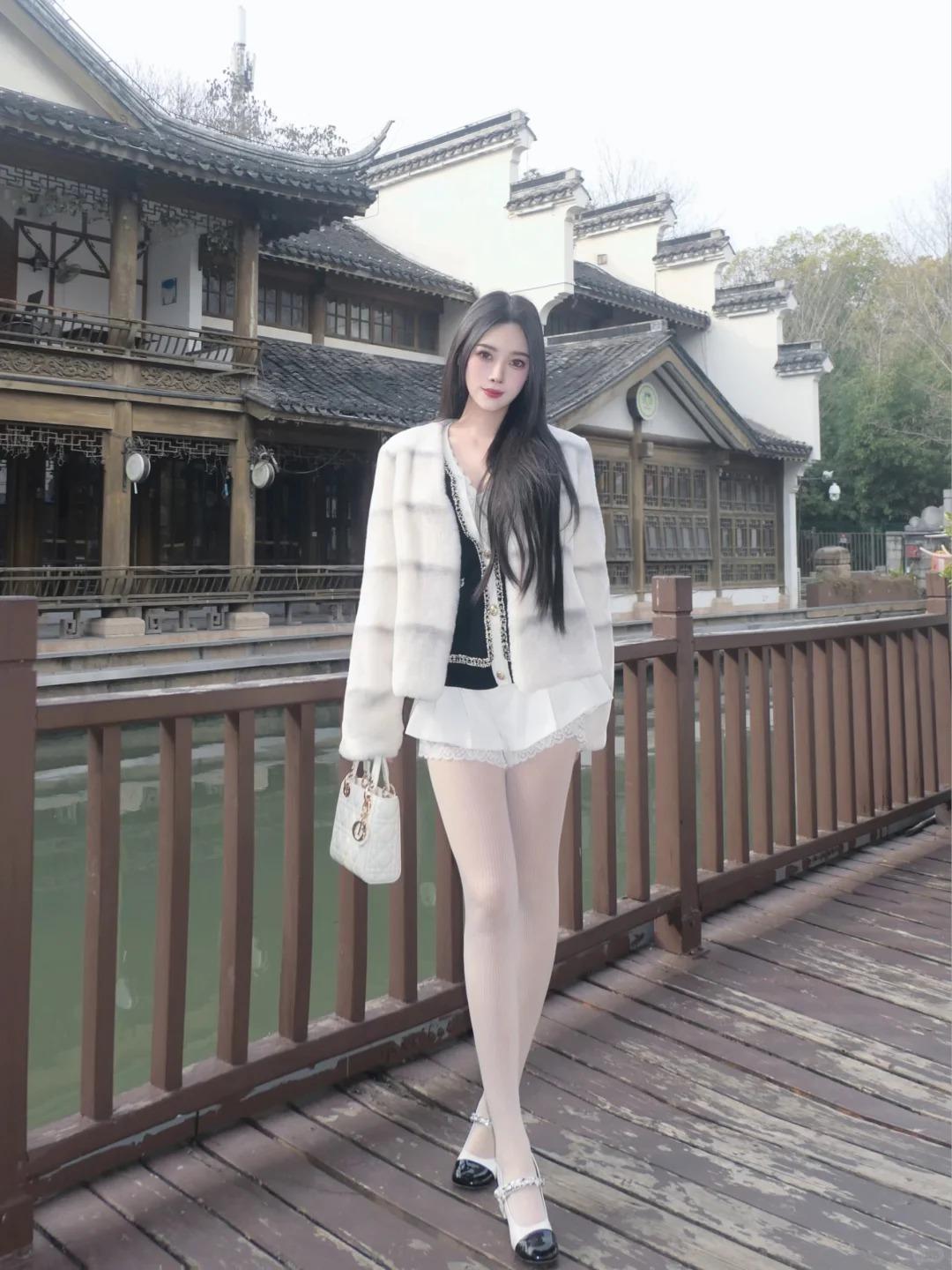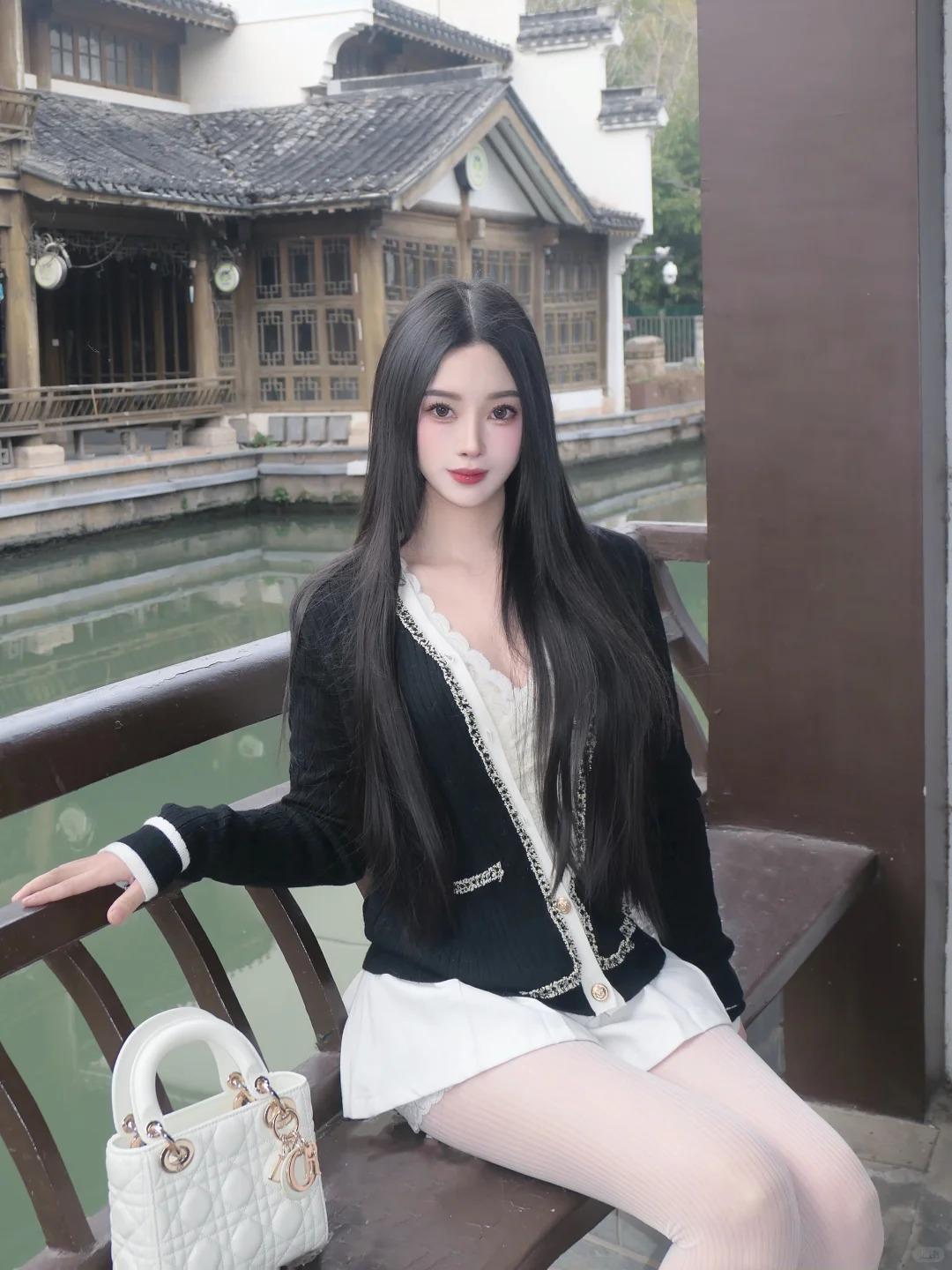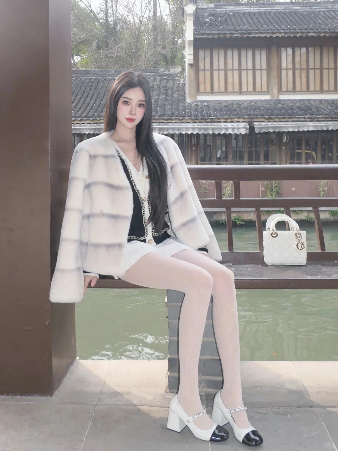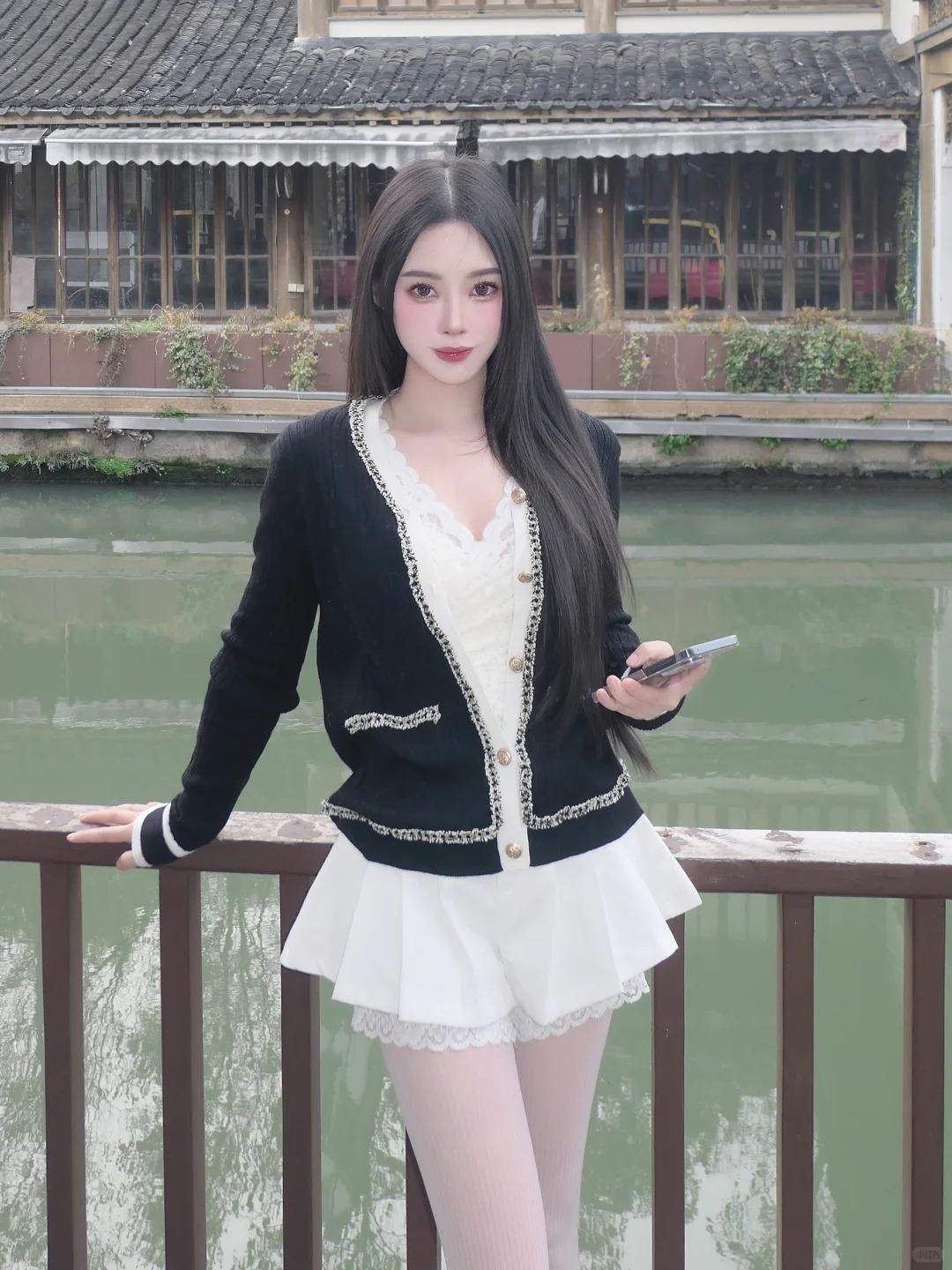 春日限定的温柔感,被这套穿搭狠狠拿捏~ 黑白小香风套装自带精致肌理,利落短款上衣勾勒纤细腰线,简约半裙长度刚好露出纤细小腿,黑白撞色经典又不沉闷,自带温柔滤镜。搭配白色条纹袜,细碎纹路增添灵动俏皮感,中和小香风的成熟,多了几分少女元气。脚下的玛丽珍鞋,圆头设计软乎乎,浅口款式衬得脚踝纤细,自带纯欲氛围感。整体穿搭简约不单调,黑白基调适配春日暖阳,清爽又温柔,走在街头,每一步都藏着少女的灵动与温柔,把春日小清新和纯欲感完美融合。