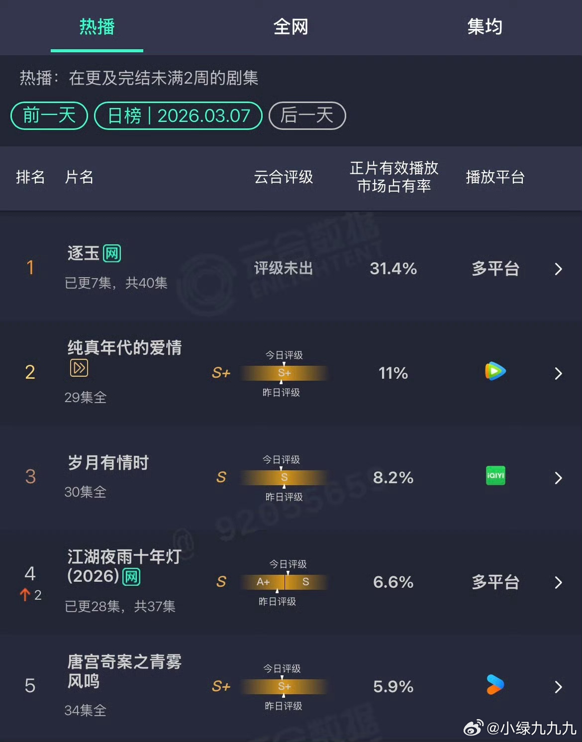 逐玉张凌赫田曦薇逐玉上线第二天云合爆开