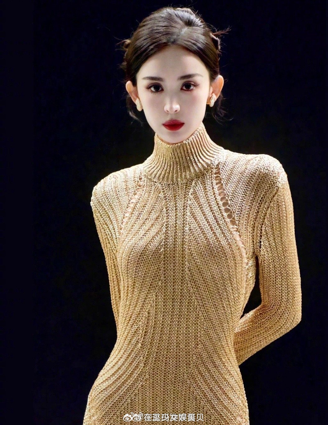 娜扎这条裙子竟然只是普通的毛衣裙,还以为是带钻的礼裙,她穿效果有点太好了