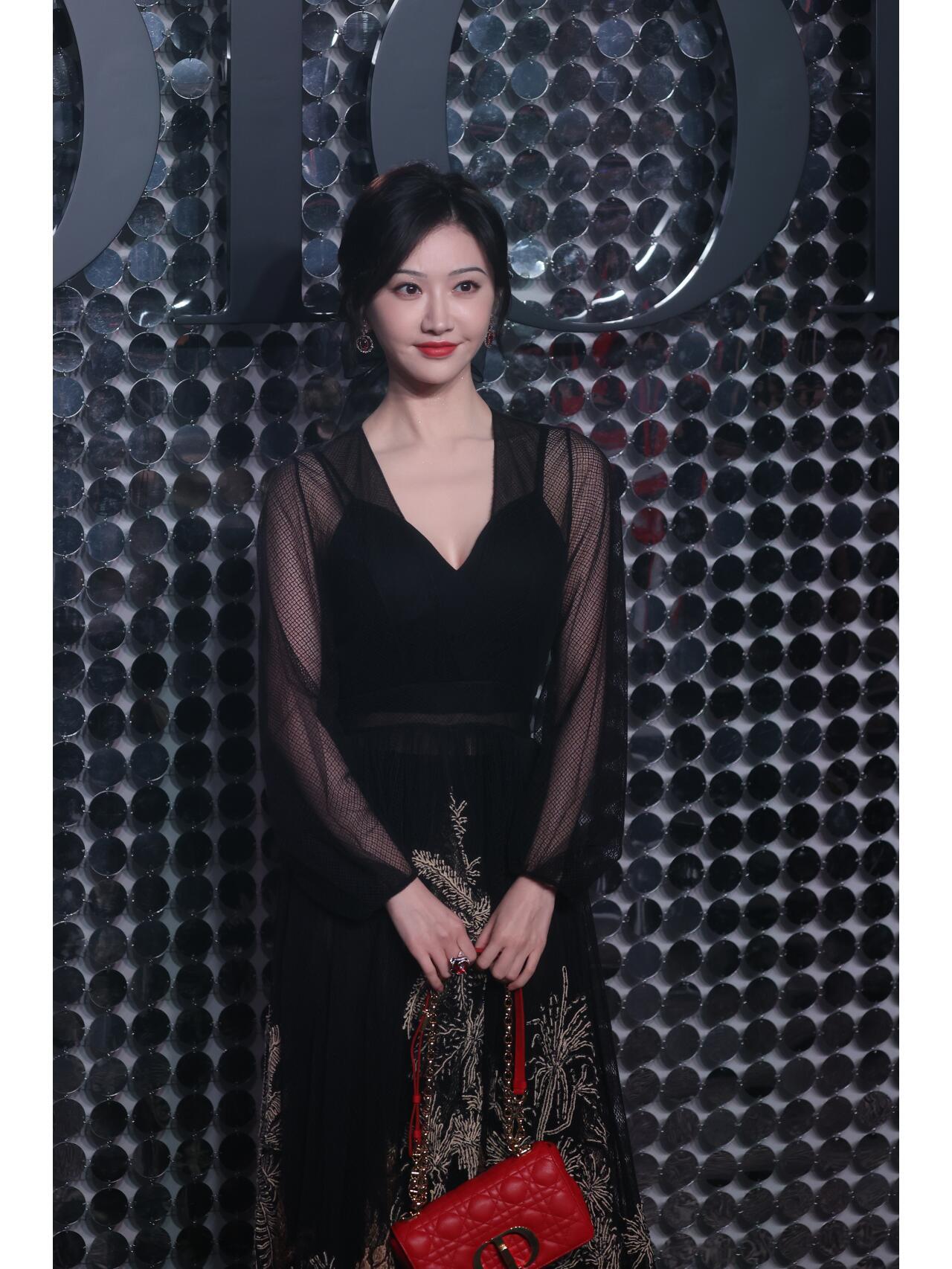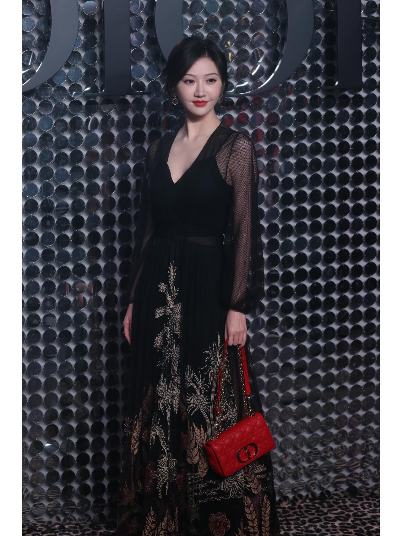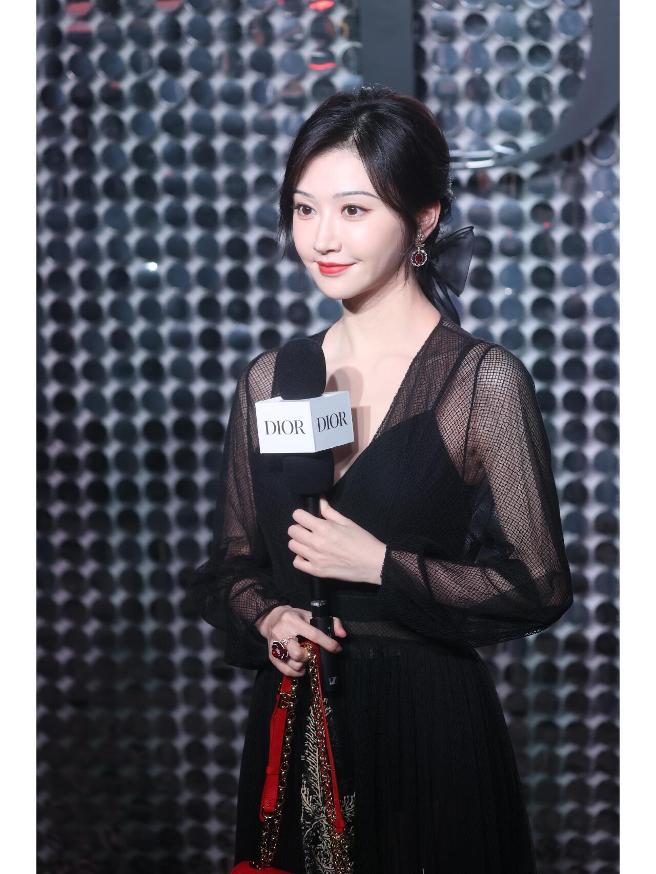 景甜黑色薄纱深V礼服惊艳亮相,充满女人味