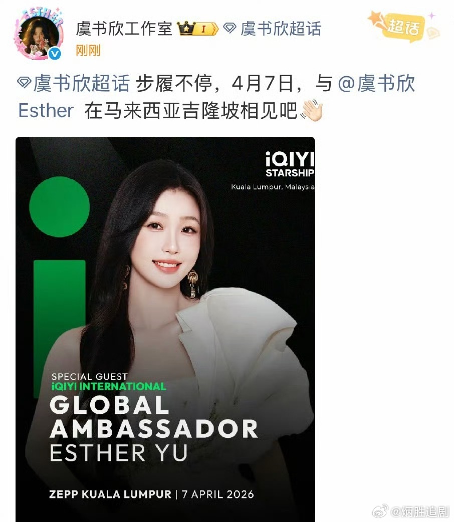 好消息:虞书欣又要公开活动了坏消息:环大陆海外相见