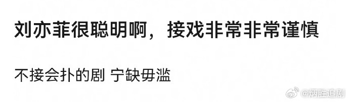 与其说刘亦菲接戏很谨慎,不如说刘亦菲只接打动自己的剧,她不需要看一部两部影视作品来在内娱刷存在感和积累咖位,哪怕她五年没有作品播出,也不用担心查无此人