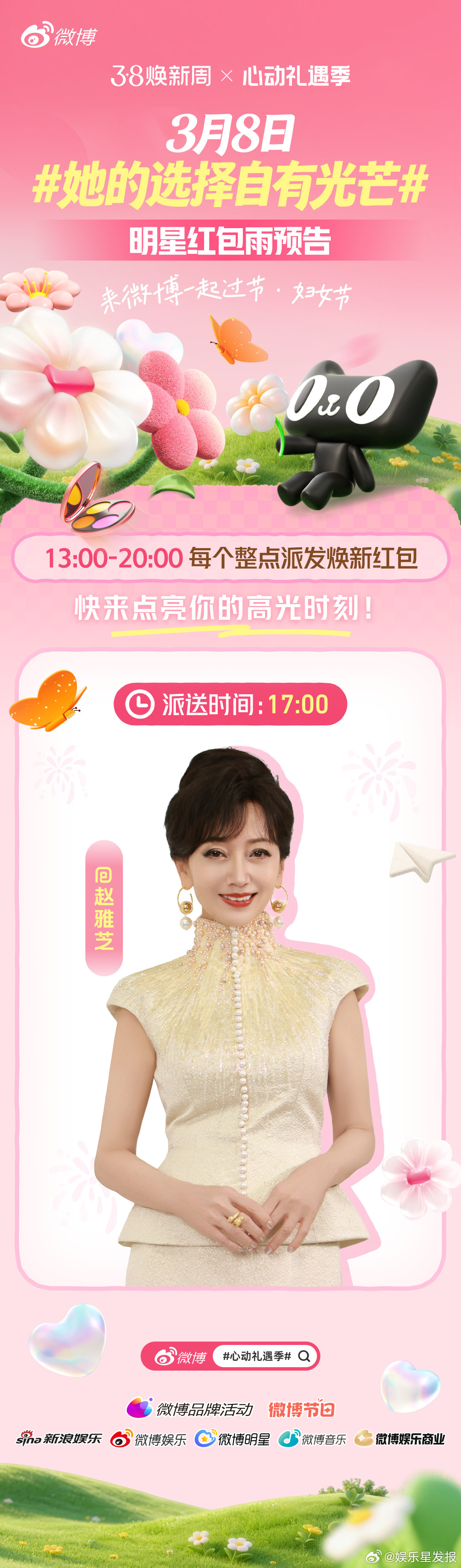 赵雅芝红包 以光芒,敬自己!过节好有仪式感,亲自发红包宠粉啦。这份礼遇是专属于大家的节日仪式感,愿女孩们从容优雅,自有光芒。