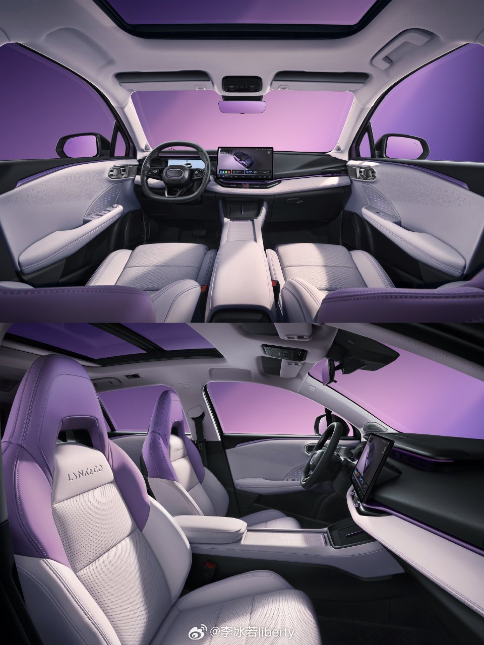 车辆本身二代设计语言暮光紫珠光车漆搭配沐光紫境内饰智能化搭载LYNK Flyme Auto车机系统配备21项驾驶辅助功能Lynk Sound聆境之声14扬环绕音响