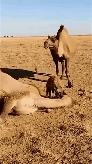 这才是婚姻最顶级的浪漫!看完破防了 荒漠里,母骆驼刚低头歇口气,一只鬣狗就鬼鬼祟