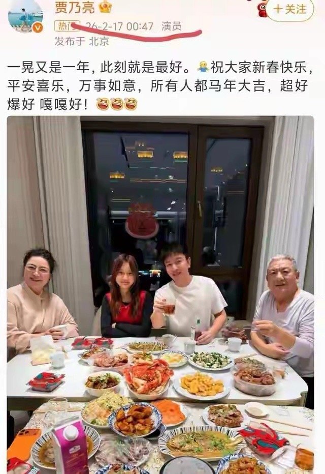 甜馨跟爸爸回老家过年,贾乃亮晒全家福,意外暴露拍照人