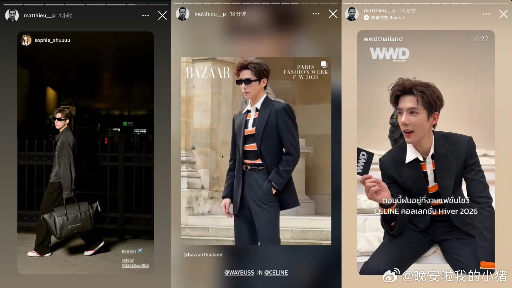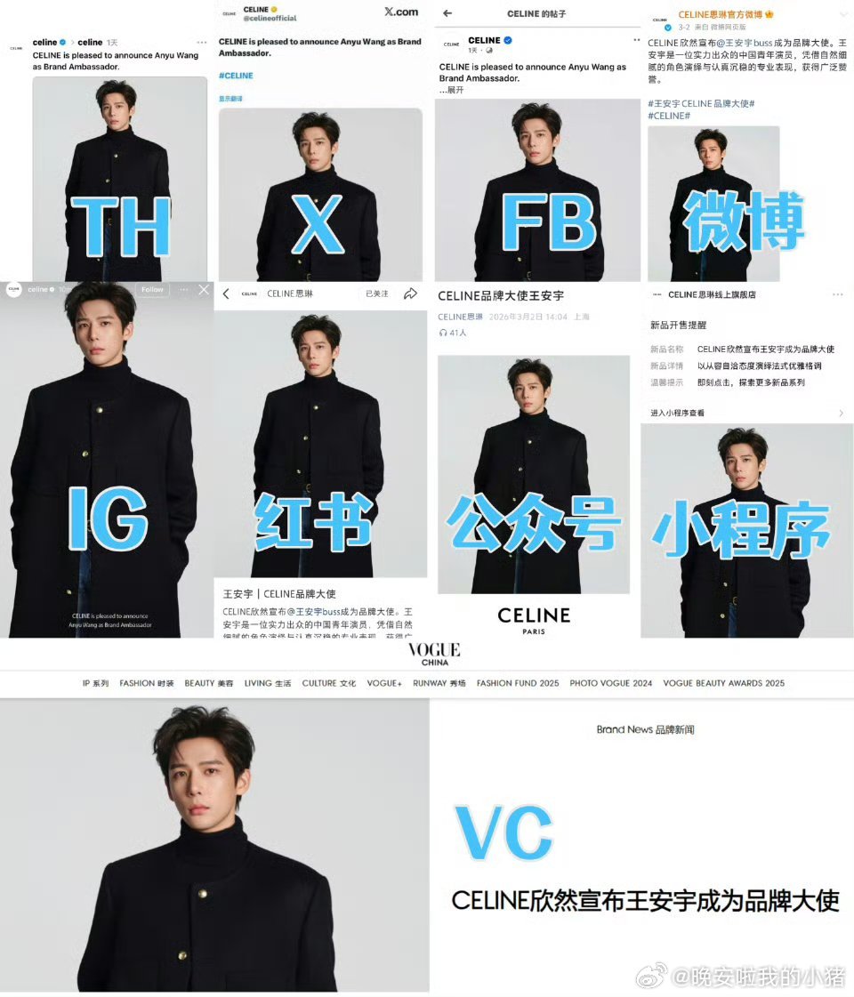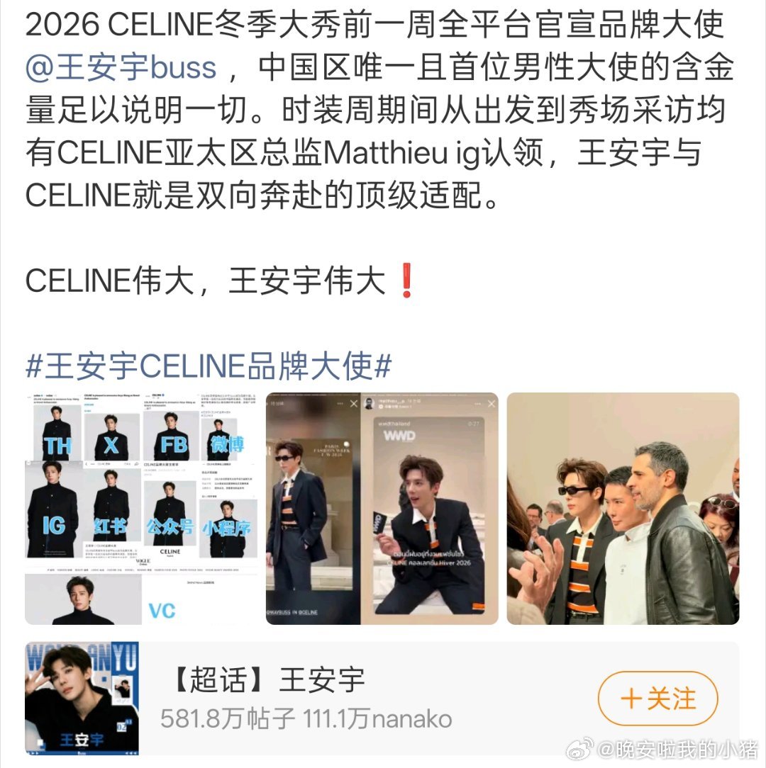 王安宇巴黎时装周待遇蛮好的,国内首位男性CELINE品牌大使从出发到秀场都有官方ins认领