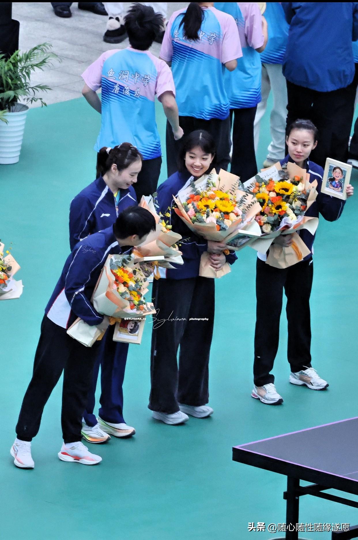 笑容比花还灿烂的孙颖莎! 就说她左瞧右看到底是在看啥呢,什么都好奇,什么都想看看还要问问。 和孙颖莎一起进校园参加活动的一共有7个女孩儿,王晓彤、石洵瑶、韩菲儿,朱梓予,这些小女孩儿都是通过孙颖莎才认识的她们。 还有一个剪学生头发的女孩儿不知是谁。 这一群女孩儿都是孩子们心中的偶像和榜样!