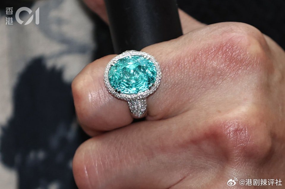 根據《香港01》記者從網絡搜尋,搵到一枚非常相似的鑽石戒指。18k白金鑽石戒指鑲嵌了一顆霓虹帕拉伊巴碧璽。一看價格更加不得了,盛惠27萬歐元,即約242萬港紙。