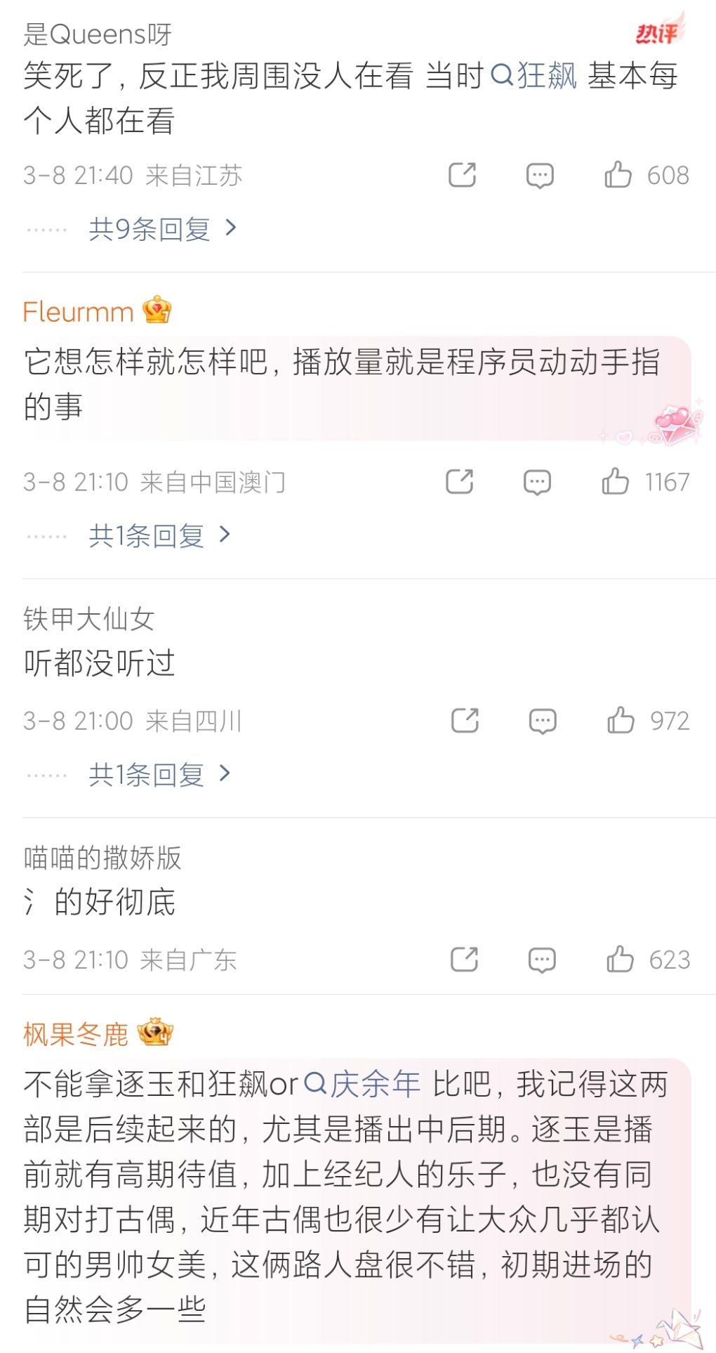 逐玉播放量超过狂飙连出来撑腰的剧粉都没有——按道理这种古偶剧的受众应该都是年轻人