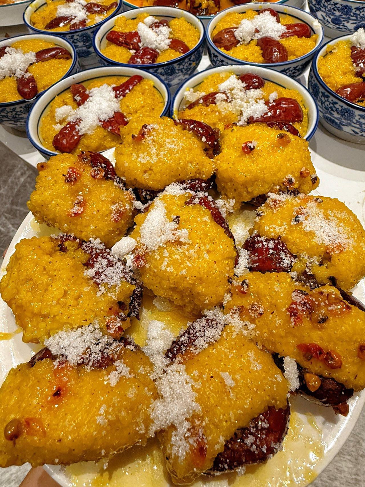 #到山西,一定要尝的美食有哪些# 到山西旅游,我认为一定要尝的美食,必须是由官方认证的“十大晋菜”、享誉全国的面食、风味独特的各色小吃以及承载地方文化的非遗美味,它们共同构成了山西丰富多元的饮食画卷。 “十大晋菜”:首先是过油肉:过油肉为晋菜之首,猪里脊肉片经滑油后爆炒,出锅前烹入山西老陈醋,醋香点睛,口感滑嫩,是经典的下饭菜。 糖醋黄河大鲤鱼,糖醋鱼酸甜可口,是宴席常客。山西毗邻黄河,红烧或糖醋黄河大鲤鱼肉质肥厚细嫩,是极具地方特色的河鲜美味。 什锦铜火锅,尤其流行于大同地区,将酥肉、丸子、烧肉、多种蔬菜等食材层层码入传统铜锅中,炭火慢煮,汤鲜味浓,是冬日团聚的温馨美食。 其他代表性晋菜还包括,香酥鸡、扣肉、糖醋丸子、虾酱豆腐、醋浇羊肉、葱烧台蘑等,涵盖了多种烹饪技法和风味。 另:山西为面食之乡,面食种类繁多,技艺精湛,是美食之旅的核心。 首先是刀削面,刀削面为山西面食的“名片”。师傅用特制弯刀将面团削成柳叶状的面片飞入锅中,煮熟后外滑内筋,搭配肉臊或番茄鸡蛋等卤汁,口感绝佳。政府 莜面栲栳栳,晋北特色粗粮美食。将莜面卷成蜂窝状筒形蒸熟,口感筋道,麦香浓郁。传统吃法是蘸羊肉臊子或酸菜汤,别有风味。 剔尖,山西独有的制作技法,用竹筷将盘中的面团剔成两头尖的面条入锅,口感爽滑,可浇卤或炒食。 猫耳朵,手工捏制成小巧的猫耳形状,可汤食可炒制,家常味十足。 牛肉丸子面,临汾特色,以香辣红汤为底,搭配粗圆碱面条和手工牛肉丸子,硬核过瘾。 打卤面,太原家常味道,卤汁浓稠,用料丰富(香菇、木耳、烧肉等),是当地人隔三差五就要吃的美味。 还有风味独特的特色小吃,柳林碗托,用荞麦面糊蒸制而成,形如碗状,可凉拌可热炒。凉拌时酸辣爽口,是消暑神器;热炒则香气扑鼻。 太谷饼,历史悠久的晋商茶点,用胡麻油烤制,外皮酥脆,内里绵软,甜而不腻,久放不坏,是绝佳的伴手礼。 羊杂割,流行于太原、大同、朔州等地。将羊心、肝、肚、肠等杂碎精心熬煮,汤头醇厚鲜香,是冬日清晨驱寒暖身的硬核早餐。 头脑,太原特有的滋补早餐,又名“八珍汤”。用羊肉、山药、莲藕、黄芪等食材加黄酒慢熬而成,需搭配腌韭菜和“帽盒”(一种面饼)同食,风味独特。 以及泡泡油糕与浑源凉粉,泡泡油糕表皮金黄布满泡泡,内馅香甜。浑源凉粉以土豆淀粉制成,口感Q弹,搭配黄瓜丝、蚕豆和特制料水,酸辣开胃。