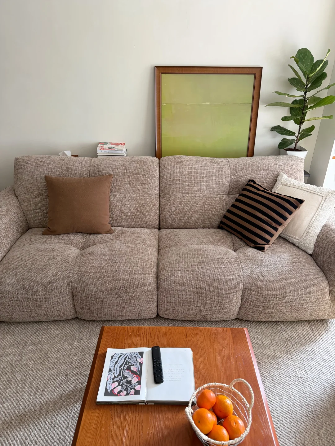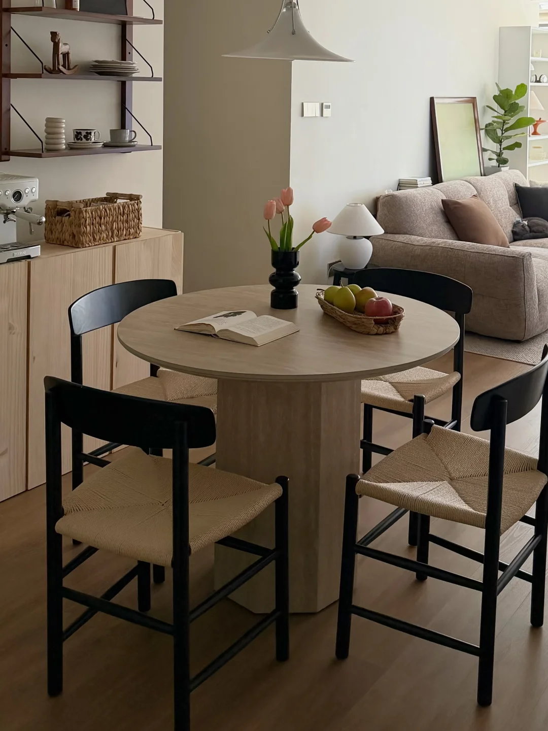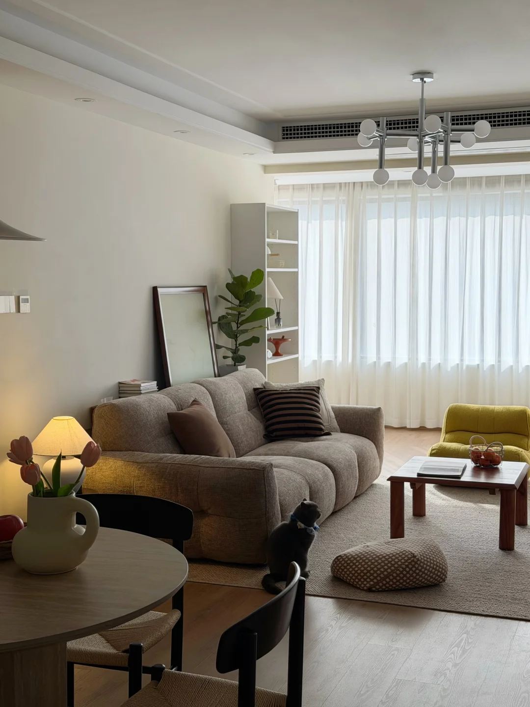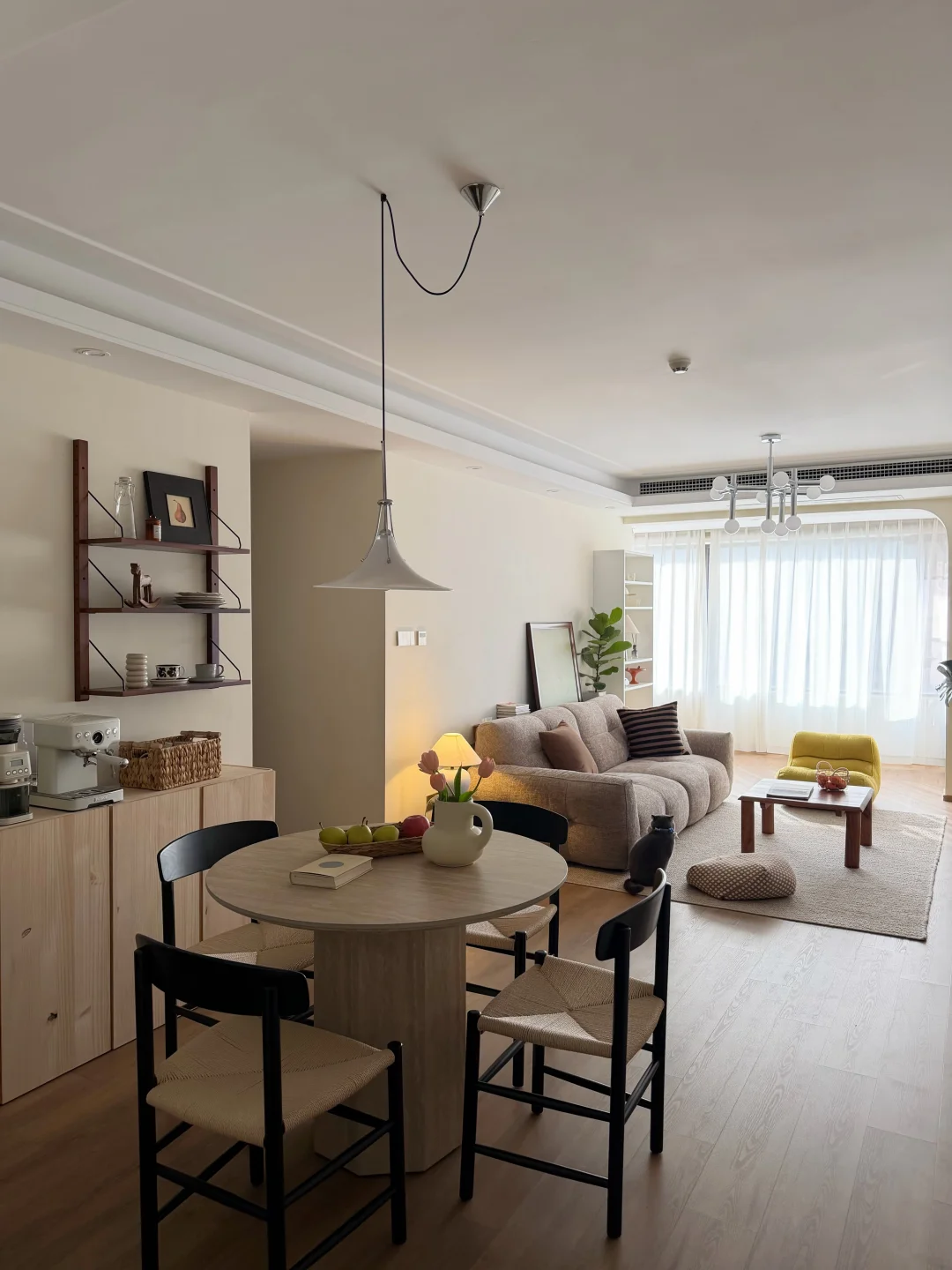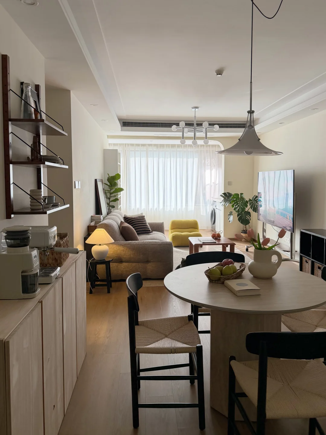 精装房改造 没有大拆大改🤔🤔 全靠软装搭配就拥有了一个温馨的家 简单耐看的洞石餐桌 柔软的地毯 舒适的沙发🛋️ 精致的装饰画 让我的家更好看啦