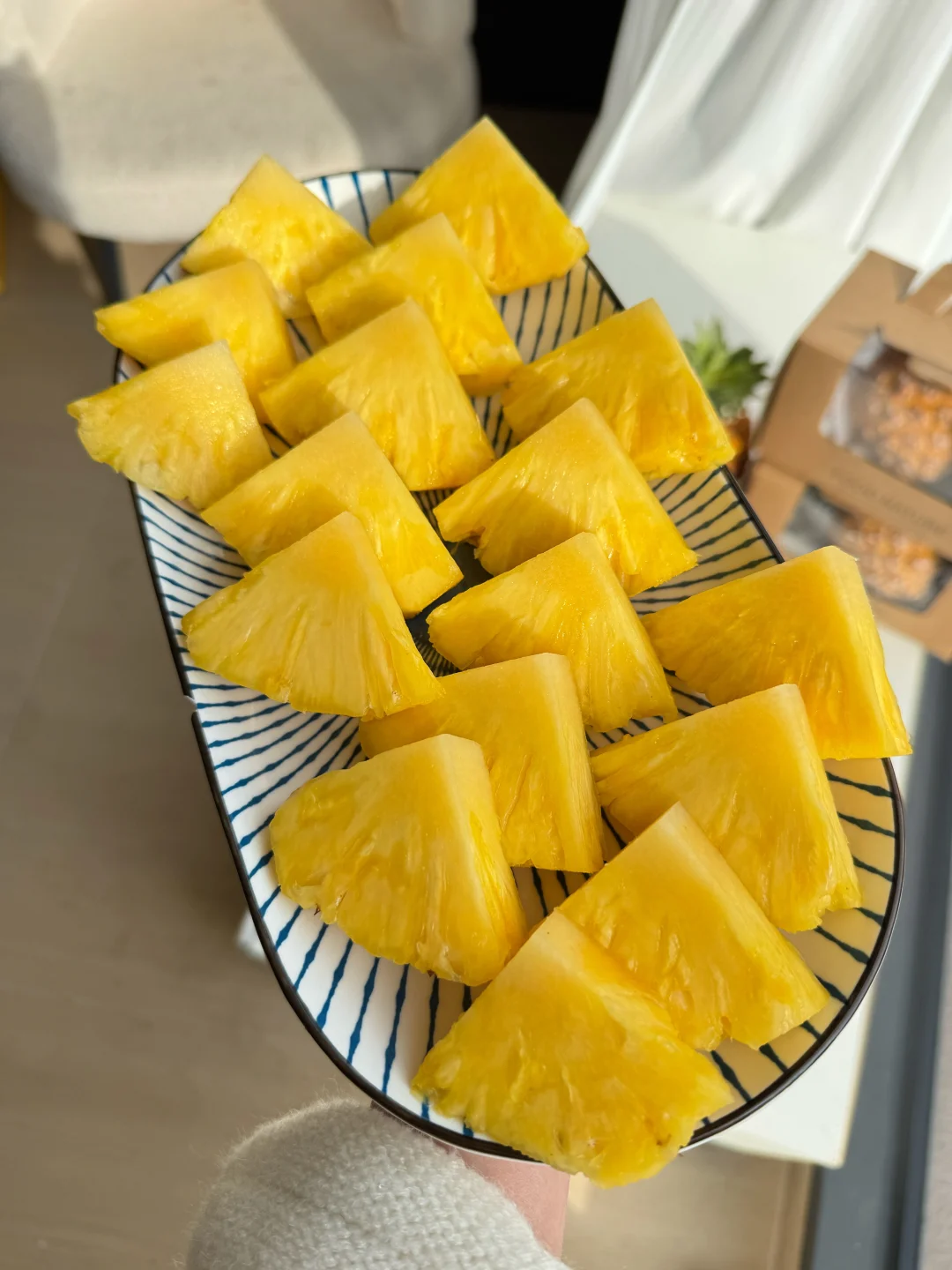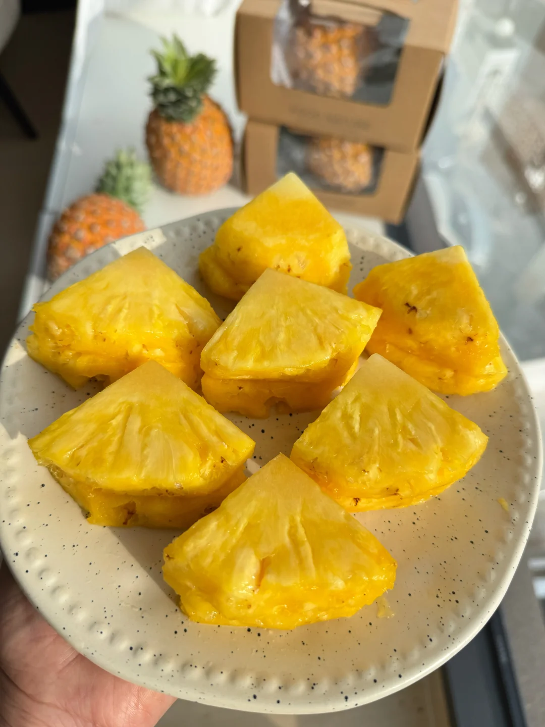 海南的金钻凤梨我真的极力推荐哦 特别是树上自然成熟的,真得绝了 一口爆汁,又香又甜,浓浓的凤梨香味 他不用像菠萝那么需要挖刺眼很麻烦 凤梨削了皮就可以吃,真得方便不少 我在海南原产地给大家发货, 收到货不甜,不香,不好吃不要钱 凤梨控们不要错过哦。