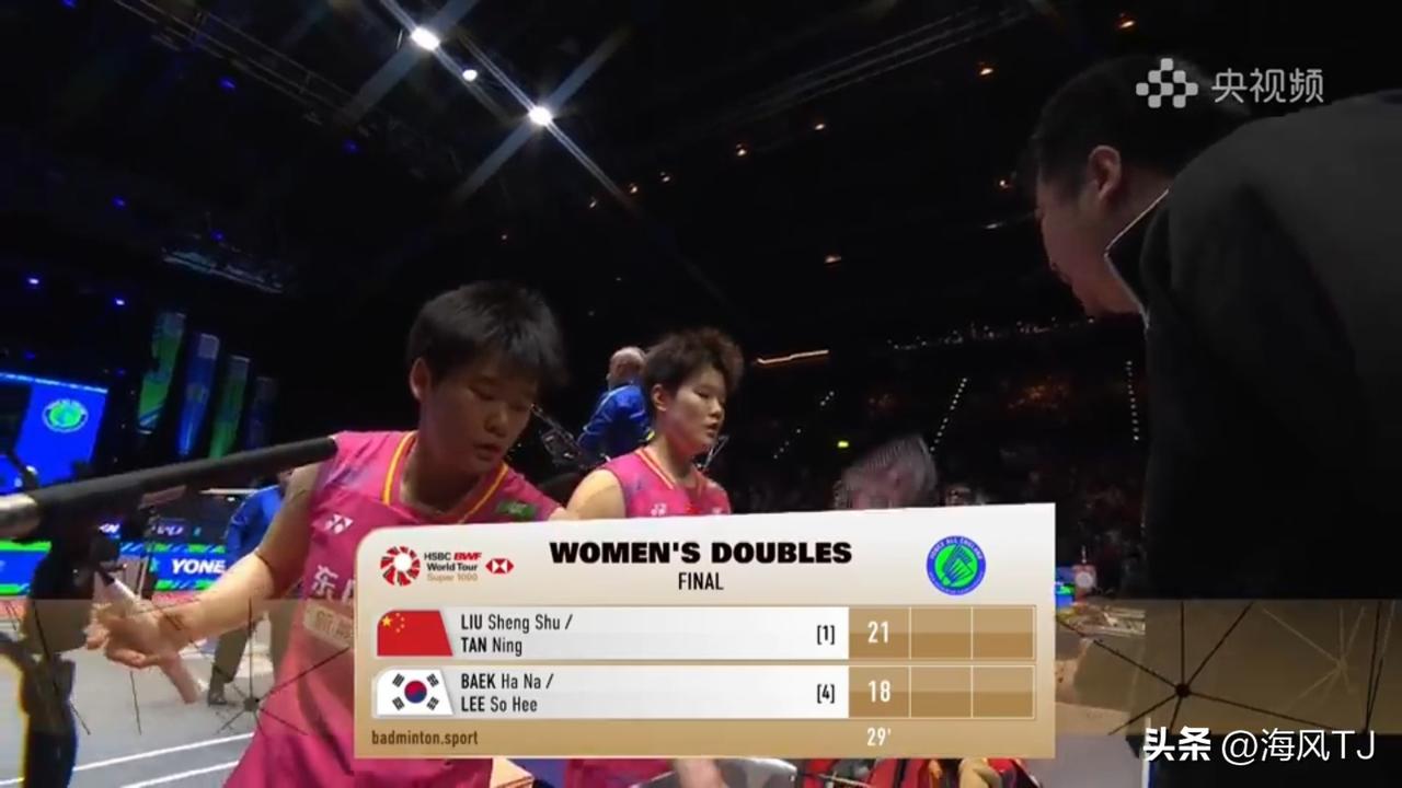 2026全英羽毛球公开赛女双决赛 🇨🇳刘圣书/谭宁VS🇰🇷 白禾娜/李绍希 第一局🇨🇳组合21:19🇰🇷组合 第二局🇨🇳组合21:12🇰🇷组合 最终刘圣书/谭宁战胜对手夺得全英羽毛球公开赛冠军