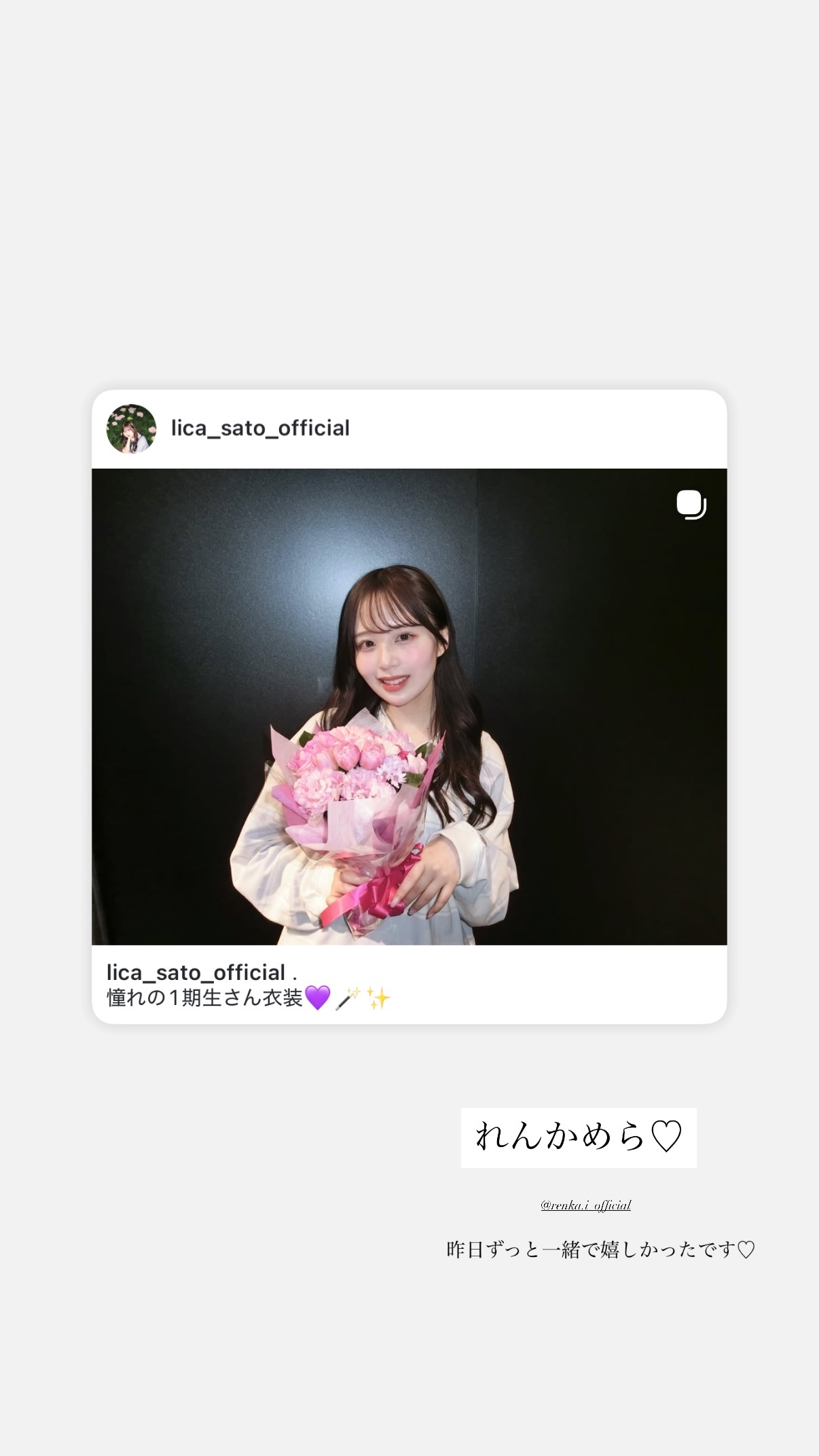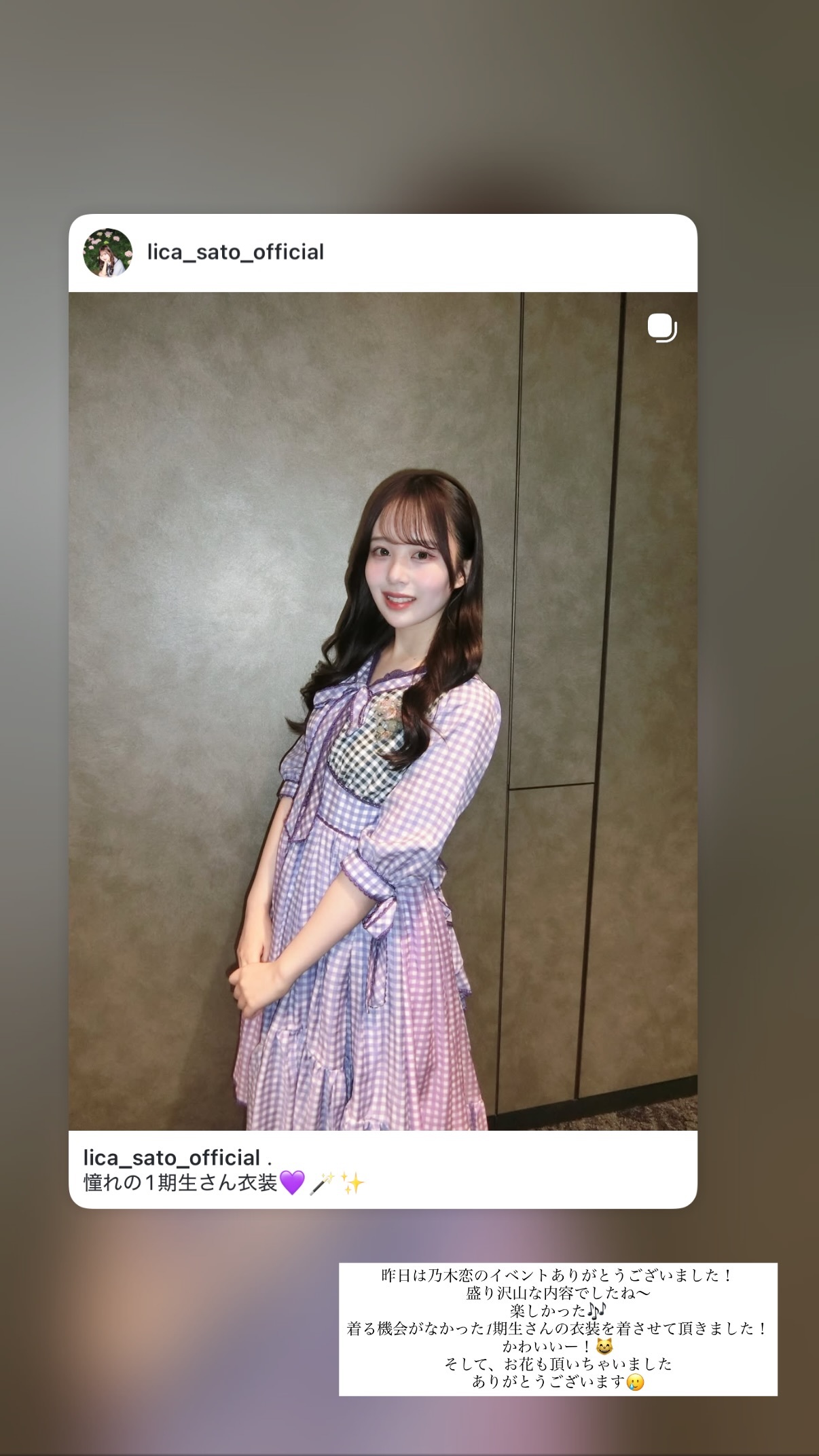 佐藤璃果「憧れの1期生さん衣装💜🪄︎︎✨」 licagram