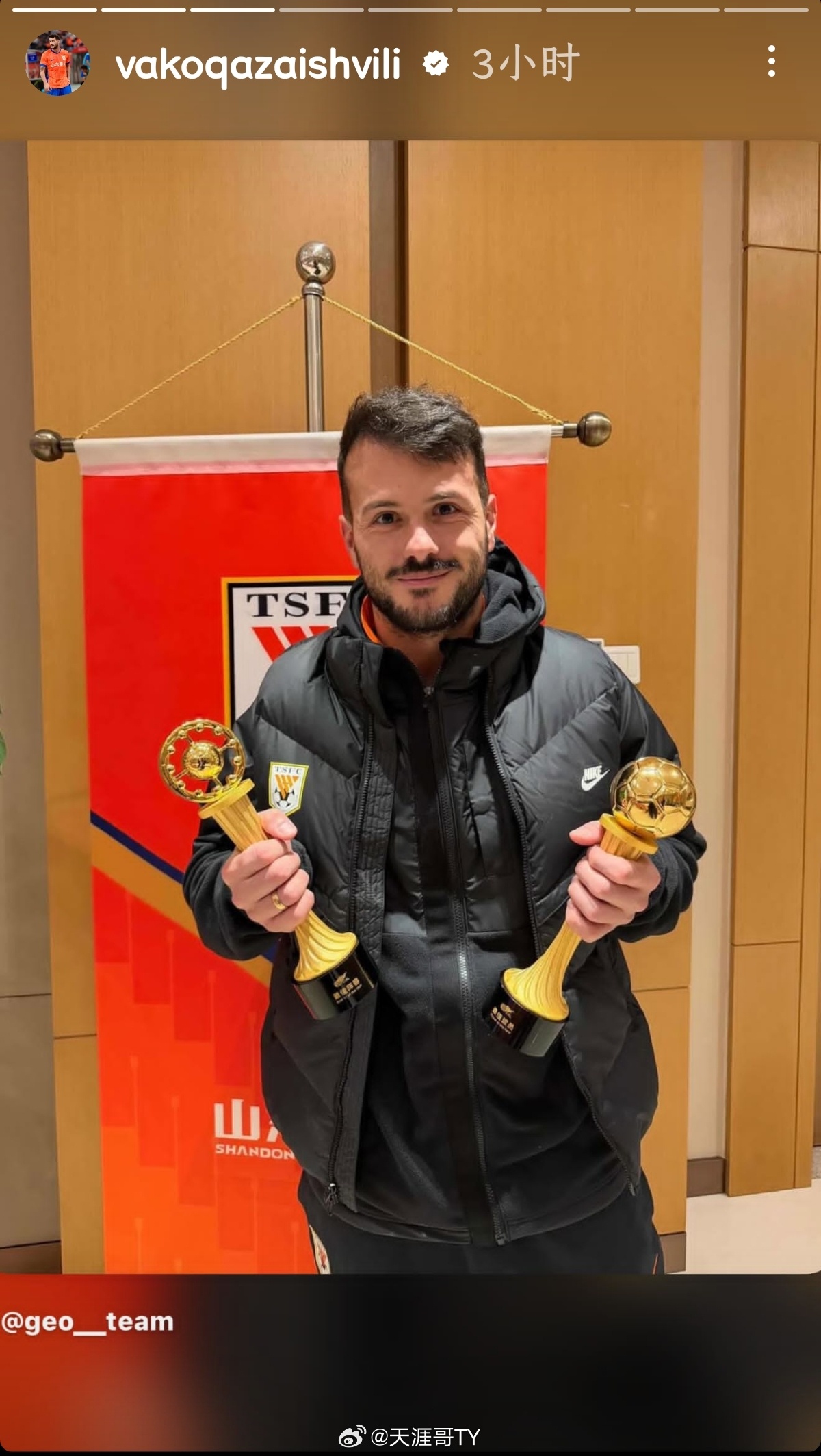 山东泰山山东泰山外援动态 卡扎伊什维利更新动态 瓦科手捧2025赛季中超联赛最佳球员(MVP)奖杯,还有中超银靴奖(联赛第二射手)。我的主队我的城