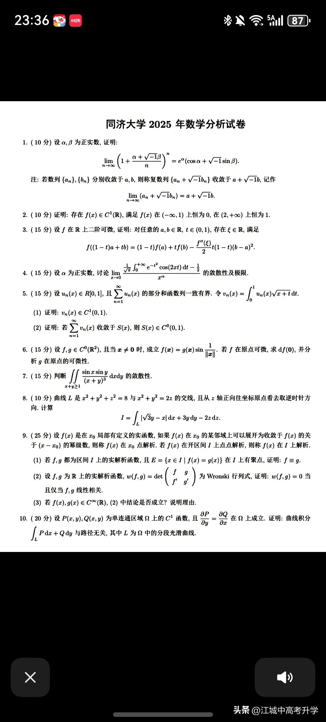 来感受一下985高校大学数学分析的难度 数学分析一直都是数学专业核心课程, 这也是难度最大的专业课之一。 数学专业愿意读的都不是普通人, 也是对数学特别热爱的, 否则连高中数学都学的十分吃力的, 是断然不会去碰触这智力的禁区的。 所谓的热门专业,好专业也是伪命题, 如果连学会的能力和愿望都没有, 大学4年都不能保证顺利毕业 那再好的就业前景不也是徒劳么?