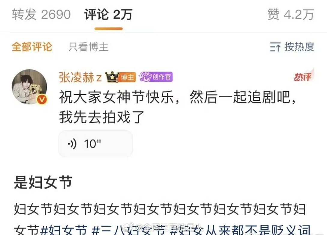 张凌赫就因为妇女节说了女神节就被骂这么狠你。。。是不是有点太夸张了?