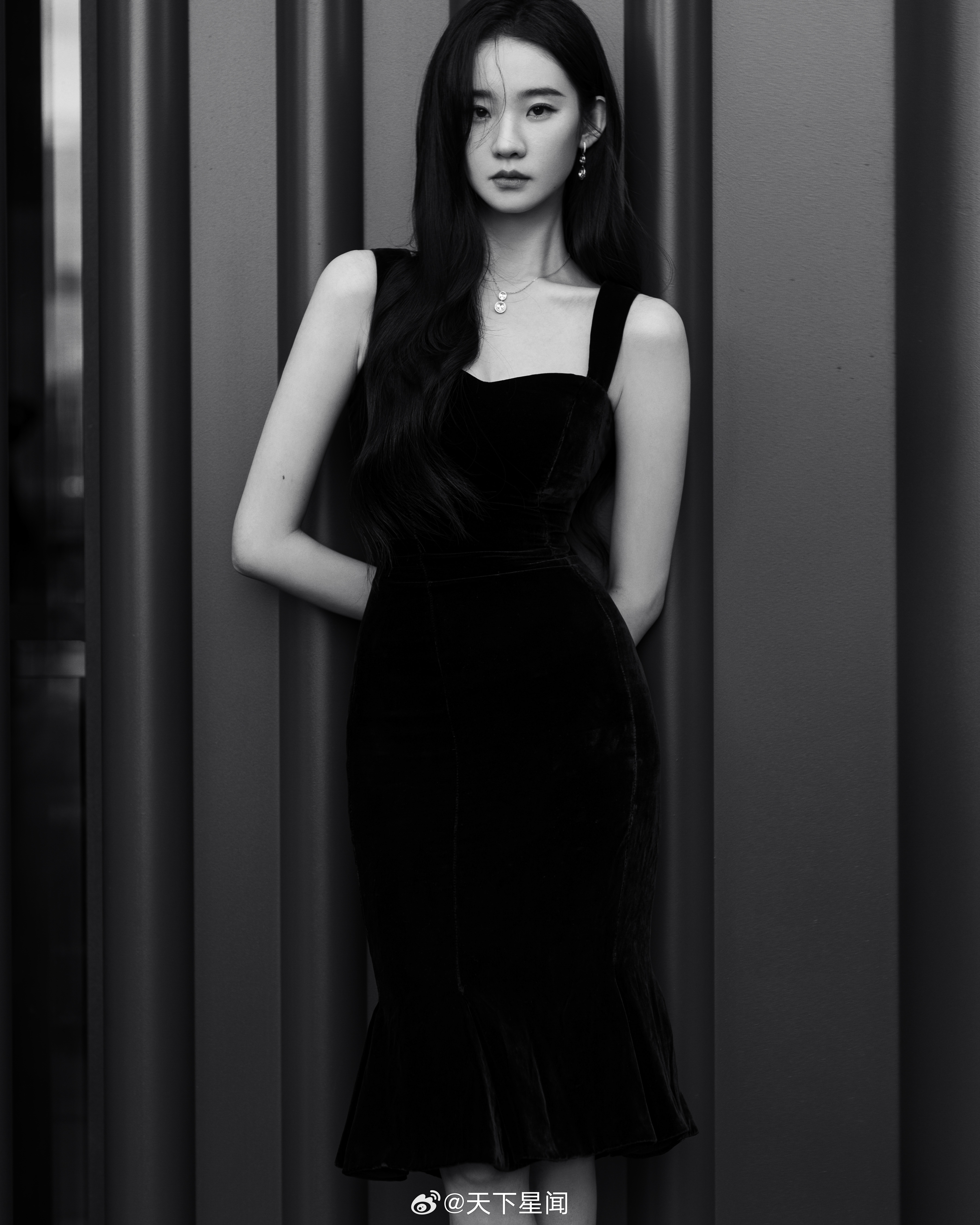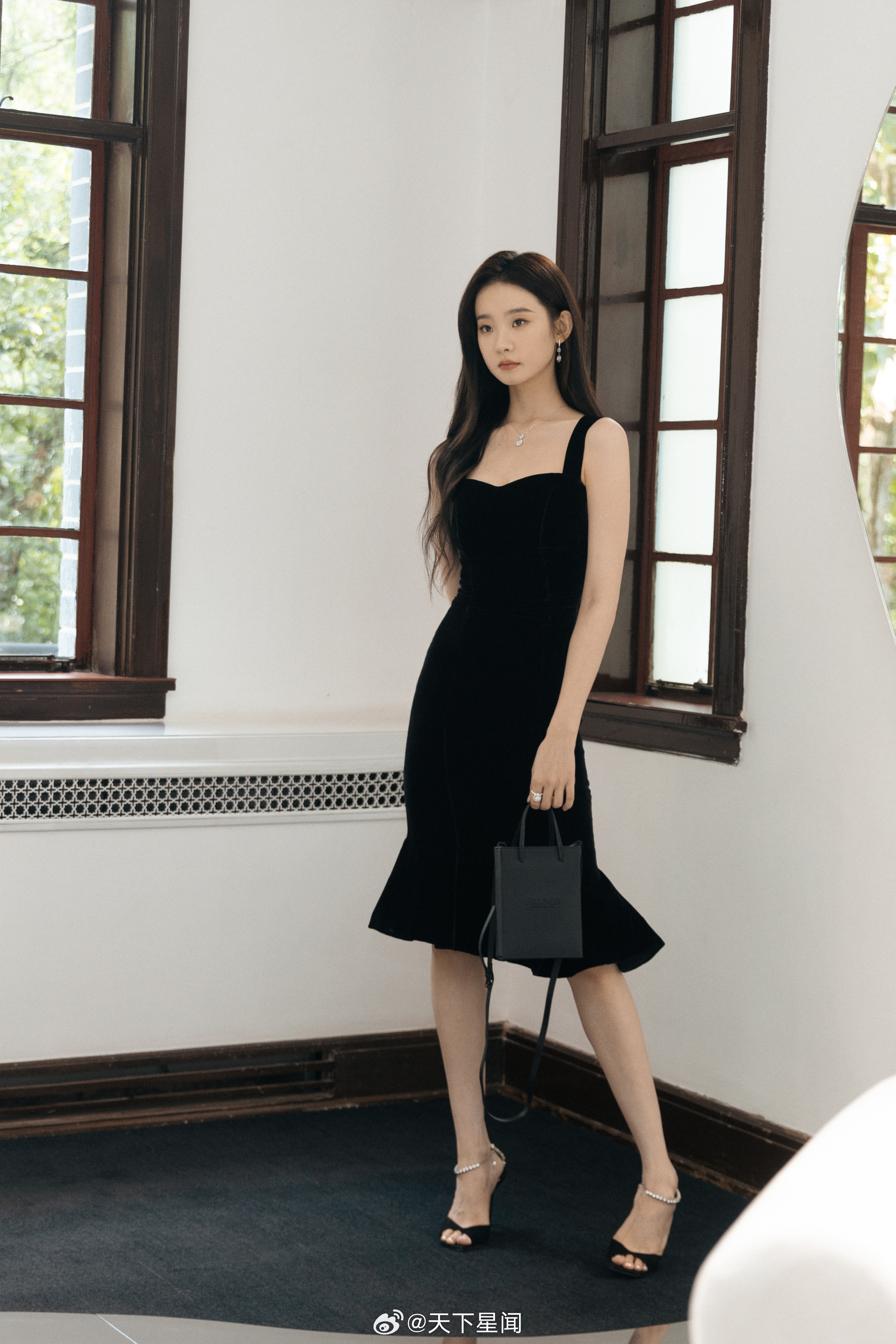 刘亦菲这条裤子挺养生,毕竟降温了肚脐眼必须护住啊