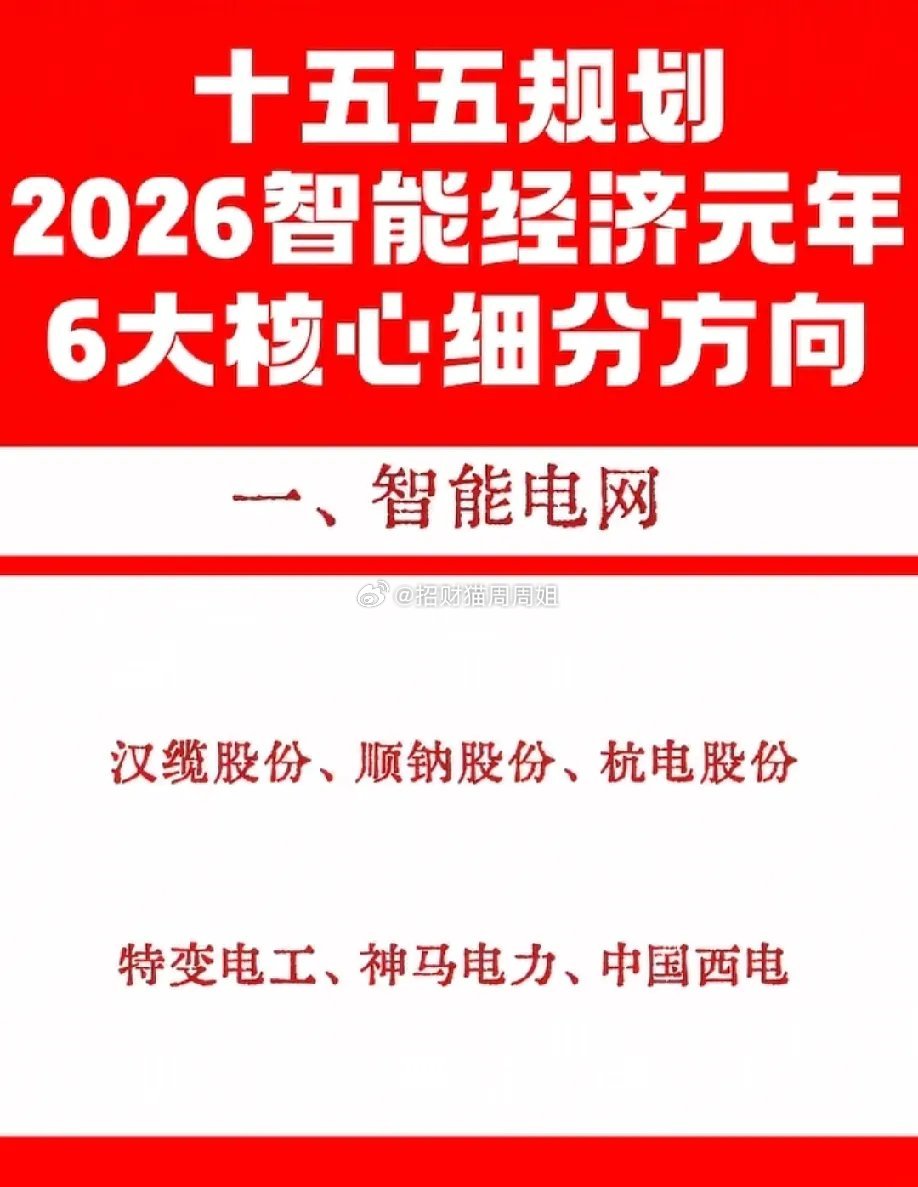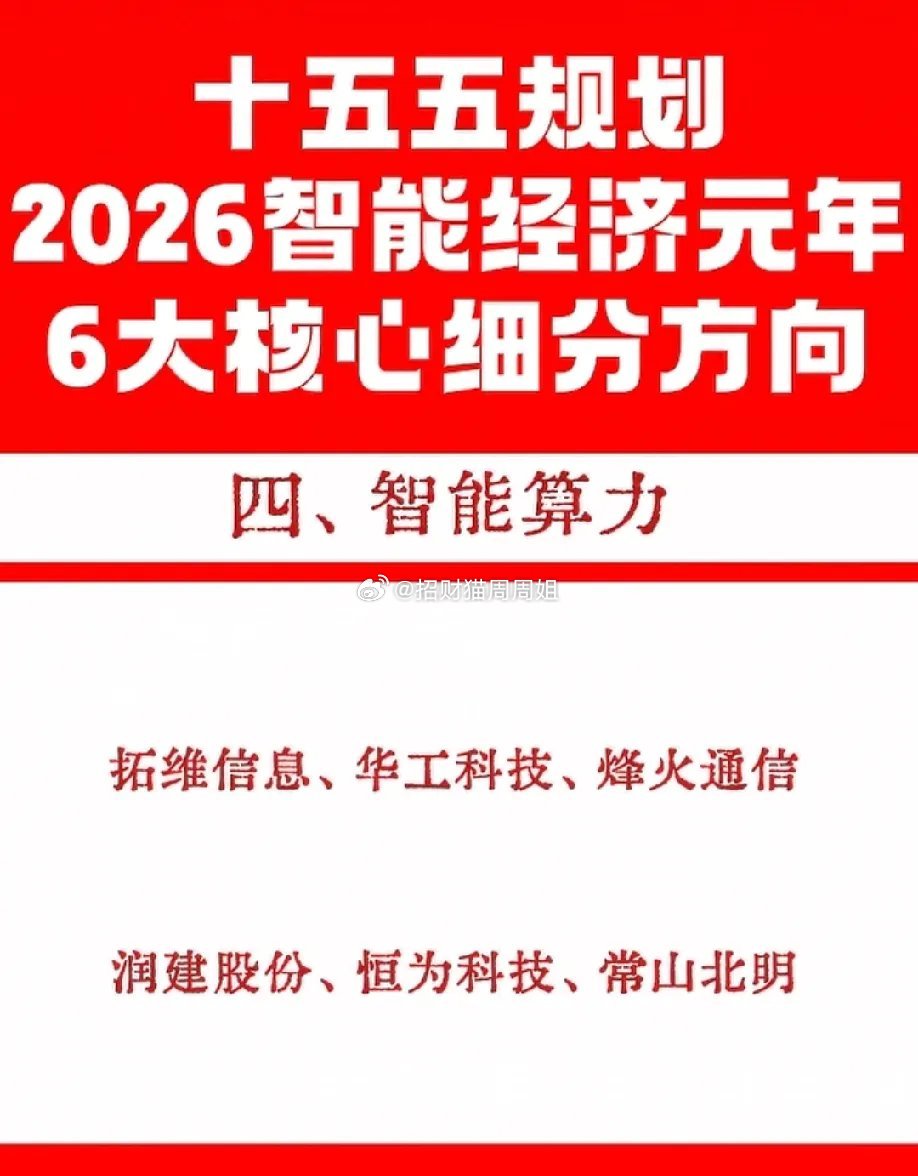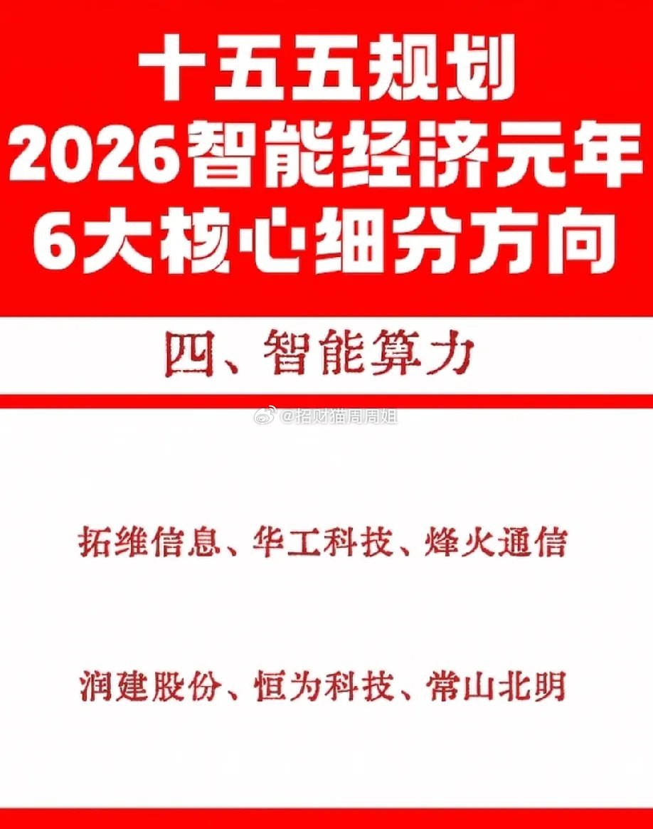 2026智能经济元年,十五五规划6大核心方向曝光!从智能电网到智慧农业,从算力基建到智能制造,每一条赛道都藏着未来的产业红利。这份细分龙头名单,是把握时代脉搏的关键线索,看懂方向,才能踩对风口。六大核心赛道最具价值的就是智能算力!