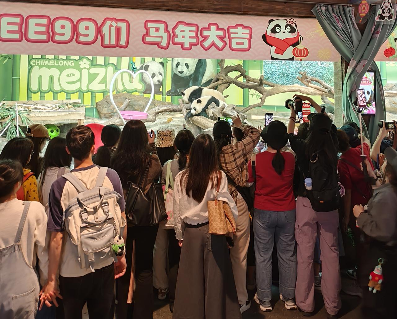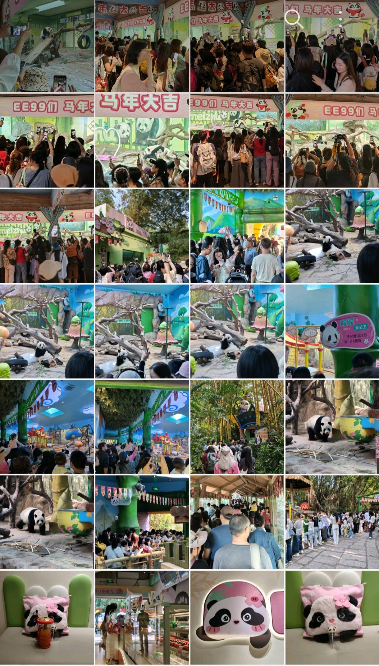 今天是三八妇女节,广州长隆有半价优惠活动,我和女儿就去长隆看大熊猫萌帅酷,亲亲,爱爱,悅悅,隆隆,婷仔,进了熊猫餐厅吃叉烧饭和糯米鸡,下午进妹珠馆,看见萌萌趴着睡觉,妹珠走了一圈也上树睡觉了,现在妹珠可以和妈妈分开睡觉了,今天妹珠很乖,没有费妈,是不是它也知道今天是妇女节,所以也不打扰妈妈睡觉啊!今天过来看妹珠的人真是很多啊!熊猫村里面的人也是很多。看看我拍的照片,基本都是看人头