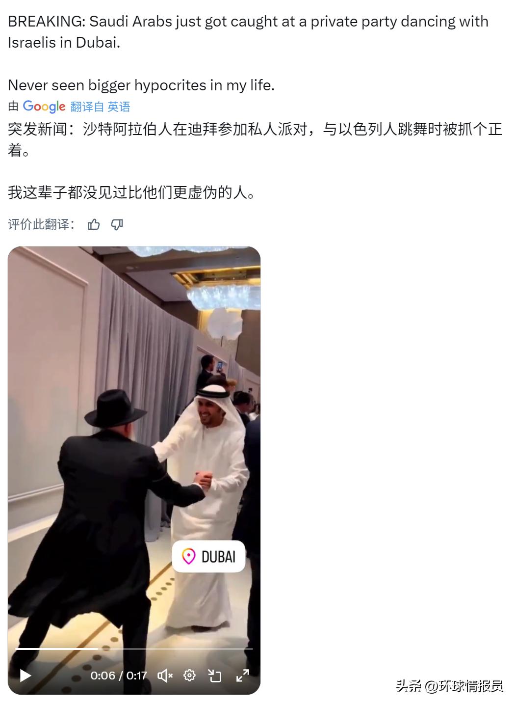 阿拉伯人一觉醒来天塌了!今天的社交媒体都在疯传,阿联酋官员(贴文指出是沙特,核实后确定为阿联酋)和以色列官员在迪拜的私人派对上一起跳舞。 这种看似矛盾的行为背后,其实藏着阿拉伯世界内部长期存在的利益纠葛与立场撕裂,不是简单的“虚伪”二字能概括,但从普通民众的视角来看,这种双面操作确实让人难以接受。 首先得明确一个基本事实,阿联酋和以色列的私下往来早就不是秘密,只是这次被公开的派对画面把窗户纸彻底捅破了。 早在2020年,两国就签署了关系正常化协议,之后还生效了自贸协定,96%的双边贸易商品都免除了关税,2022年的贸易额就超过了25亿美元,以色列的商品能自由进入阿联酋,双方在科技、投资、民航这些领域的合作一直在推进。 说白了,从国家利益层面,阿联酋和以色列早就不是“死敌”,而是有实实在在合作的伙伴,他们的高层私下接触其实是这种合作关系的延伸,只是一直没敢太公开。 但问题的关键在于,公开场合下,阿联酋和其他阿拉伯国家一样,必须站在支持巴勒斯坦的立场上。巴勒斯坦问题是阿拉伯民族的核心议题,这是整个阿拉伯世界的共识,阿盟峰会每年都会发表宣言,要求停止加沙战争、支持巴勒斯坦建国,反对以色列的非法行径。 对于阿拉伯世界的民众来说,支持巴勒斯坦不是一句口号,而是和自己的民族身份、宗教信仰紧紧绑在一起的。大家从小就知道以色列是占领巴勒斯坦领土的“敌人”,阿拉伯国家就该抱团抵制,这种观念已经根深蒂固。 所以阿联酋官员才会陷入这种两难:一方面,国家要发展,需要和以色列搞合作,毕竟以色列在科技、军事这些领域有优势,能给阿联酋带来实实在在的好处,比如可再生能源、高科技产业的合作,还有地区安全上的互相借力,比如共同遏制伊朗的影响力;另一方面,又不能得罪国内和整个阿拉伯世界的民众,必须在公开场合喊着支持巴勒斯坦、抵制以色列的口号,不然就会被骂成“叛徒”。 可这次的派对事件,相当于把这种“两面派”做法赤裸裸地暴露在阳光下。民众看到的不是什么官方谈判,而是高官在夜店搂着“敌人”跳舞,这种私人场合的亲密互动,比任何官方合作都更让人心寒。 在民众眼里,巴以冲突还在持续,加沙的平民还在受苦,你这边却和“占领者”把酒言欢,这哪里是支持巴勒斯坦,分明就是背弃了整个阿拉伯民族的利益。 更让民众无法接受的是,这事儿还触碰了宗教情感的底线。虽然伊斯兰教教义里说,穆斯林可以和不迫害自己的非穆斯林交朋友、公平相处,但前提是不能违背自己的信仰和民族大义。 巴勒斯坦问题中,以色列的很多做法被阿拉伯世界视为对穆斯林的迫害,在这种情况下,阿联酋高官和以色列官员的亲密互动,在民众看来就是突破了宗教和道德的底线,完全背离了伊斯兰信仰倡导的团结精神。 而且阿拉伯世界本身就存在分歧,有些国家私下和以色列有接触,但都做得比较隐蔽,没敢这么公开张扬。阿联酋作为海湾国家,这么明目张胆地让高层和以色列官员在私人派对上互动,相当于打破了大家心照不宣的“潜规则”,自然会成为众矢之的。 沙特民众的反应尤其激烈,因为沙特在阿拉伯世界和伊斯兰世界都有特殊地位,一直以支持巴勒斯坦的领袖自居,阿联酋的做法相当于给整个阿拉伯世界的团结打了一记耳光,让大家觉得之前的集体抵制都成了笑话。 社交媒体的传播更是让这种愤怒被无限放大。现在巴以冲突的舆论战本身就很激烈,虚假信息满天飞,但这次的事件是核实过的,有图有真相,很容易引发共鸣。 大家在评论区里骂“伪君子”,要求和阿联酋划清界限,本质上是在捍卫自己心中的民族认同和宗教信仰,他们觉得阿联酋的做法已经不是简单的国家利益交换,而是彻底背叛了阿拉伯身份和伊斯兰信仰,这种背叛比任何外部矛盾都更让人难以容忍。 说到底,这种矛盾的根源的是国家利益和民族情感、宗教信仰之间的冲突。阿联酋想靠和以色列合作获取实际好处,却忽略了民众心中最朴素的情感。 在巴勒斯坦问题没有解决之前,任何和以色列的亲密互动,在阿拉伯世界的民众眼里,都是对整个民族和信仰的背叛。 这也不是阿联酋一个国家的问题,而是很多阿拉伯国家私下都面临的困境,只是这次阿联酋做得太出格,才引发了这么大的风波。