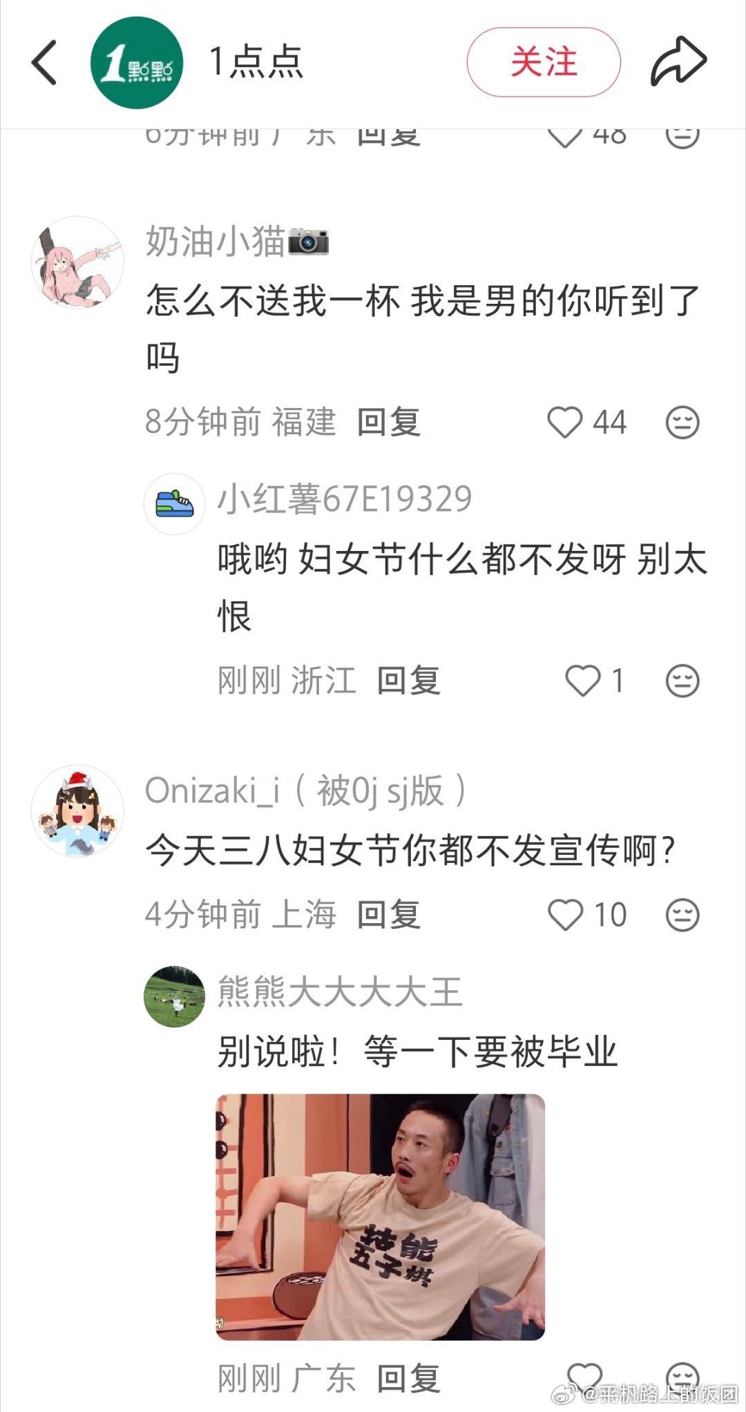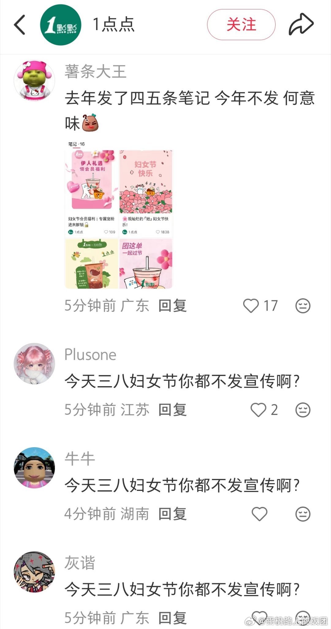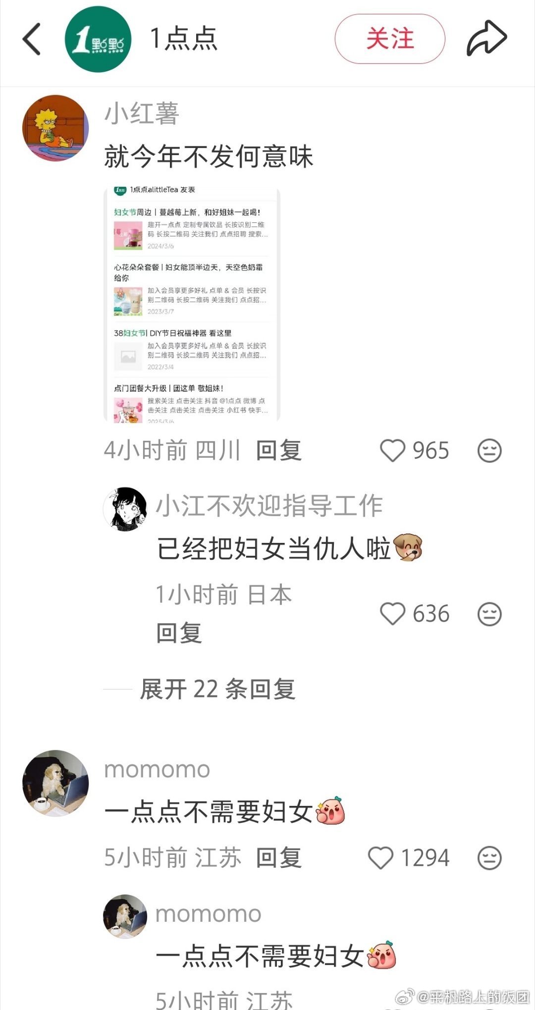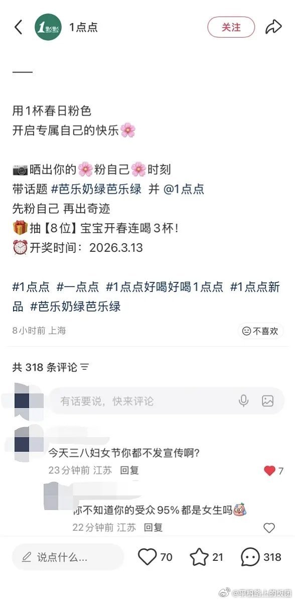 一点点是打算以后都不过了吗往年都会在38妇女节这天发节日宣传今年不发不说还拉黑了提建议的网友,是打算以后只卖奶茶给男人吗