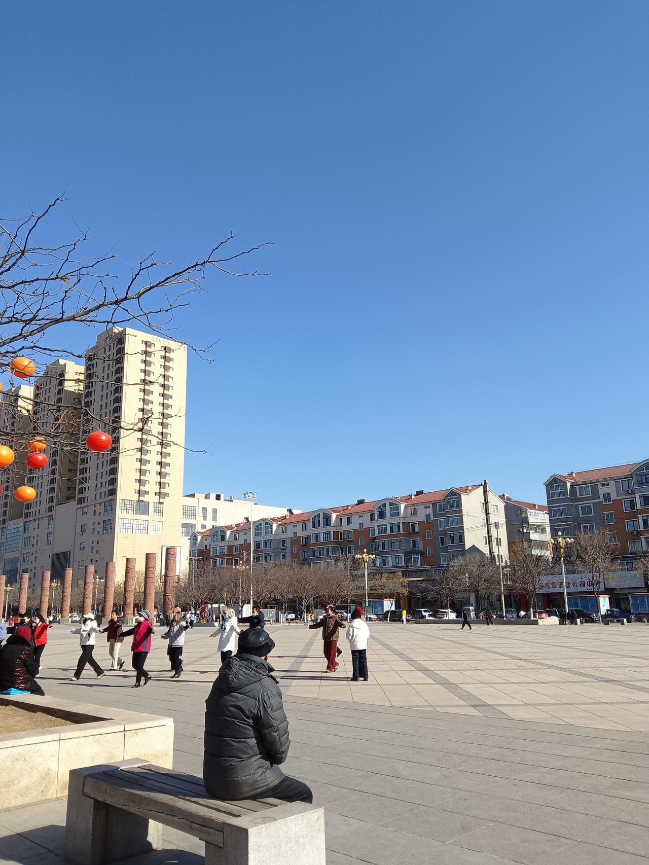 冬日暖阳下,慈祥奶奶坐在长椅上,享受宁静时光。