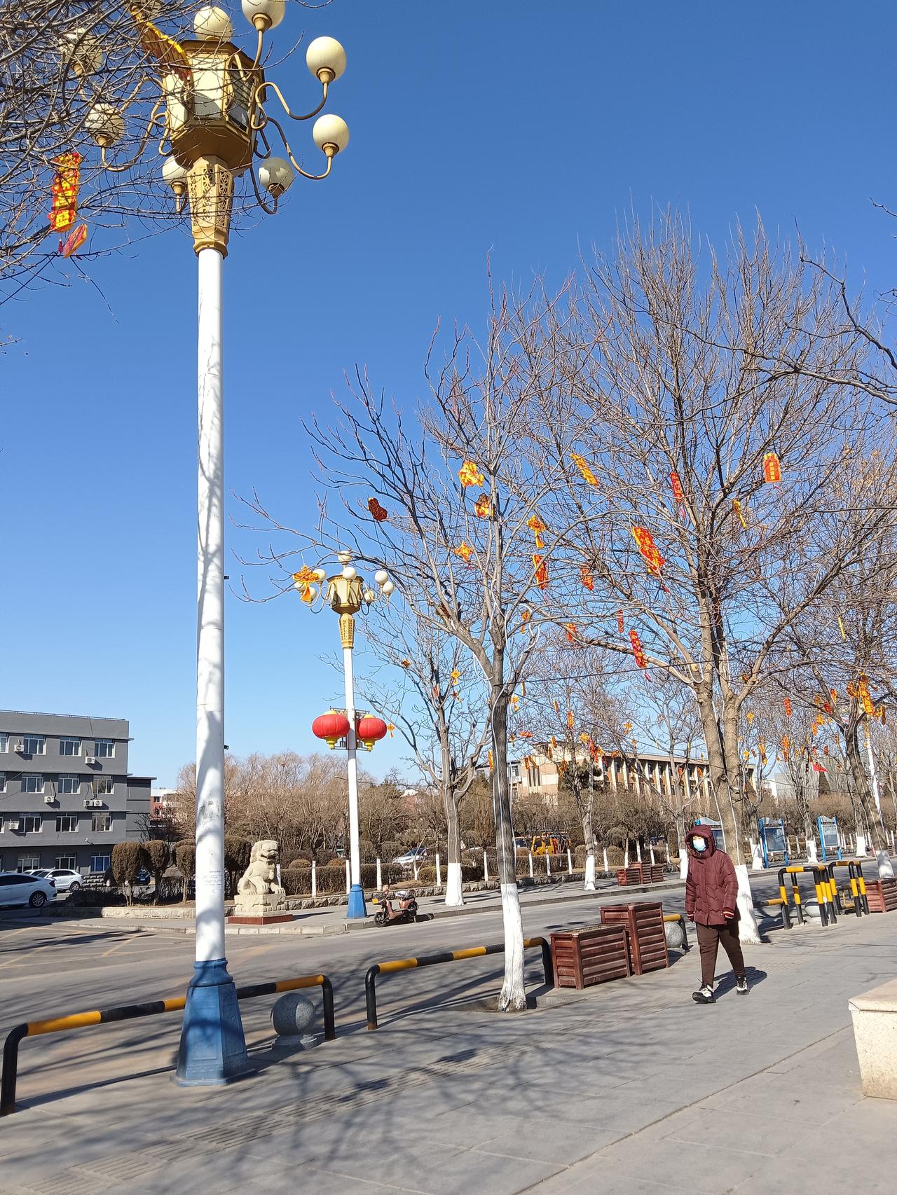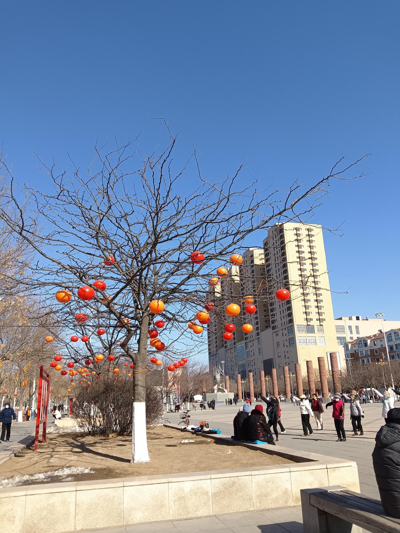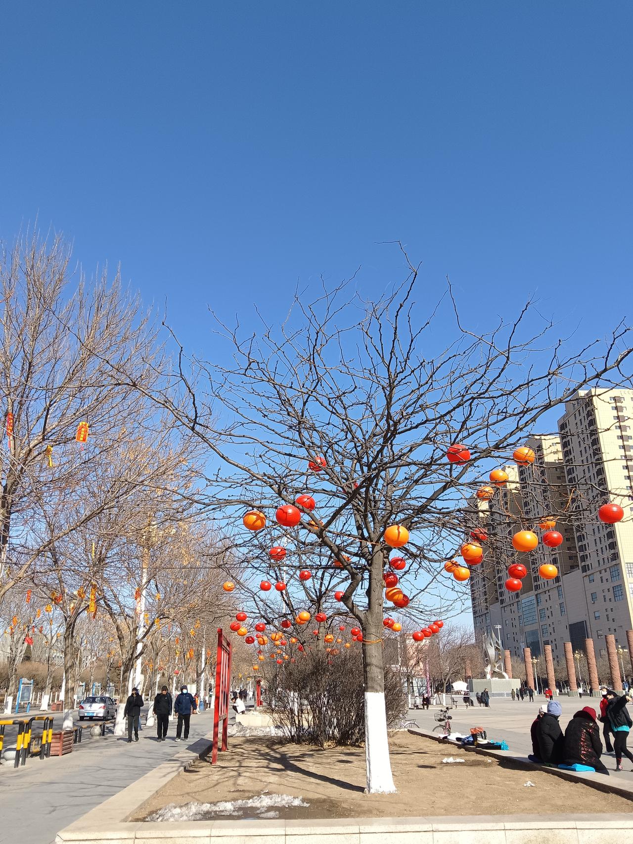 冬日暖阳下,红灯笼挂满枝头,节日气氛浓厚。