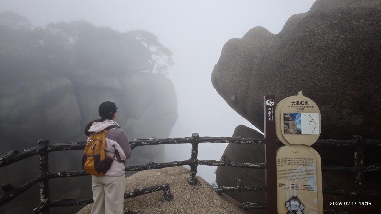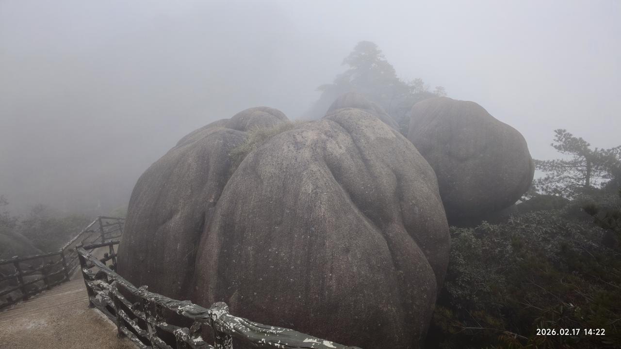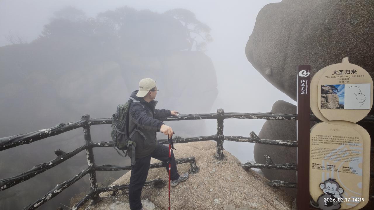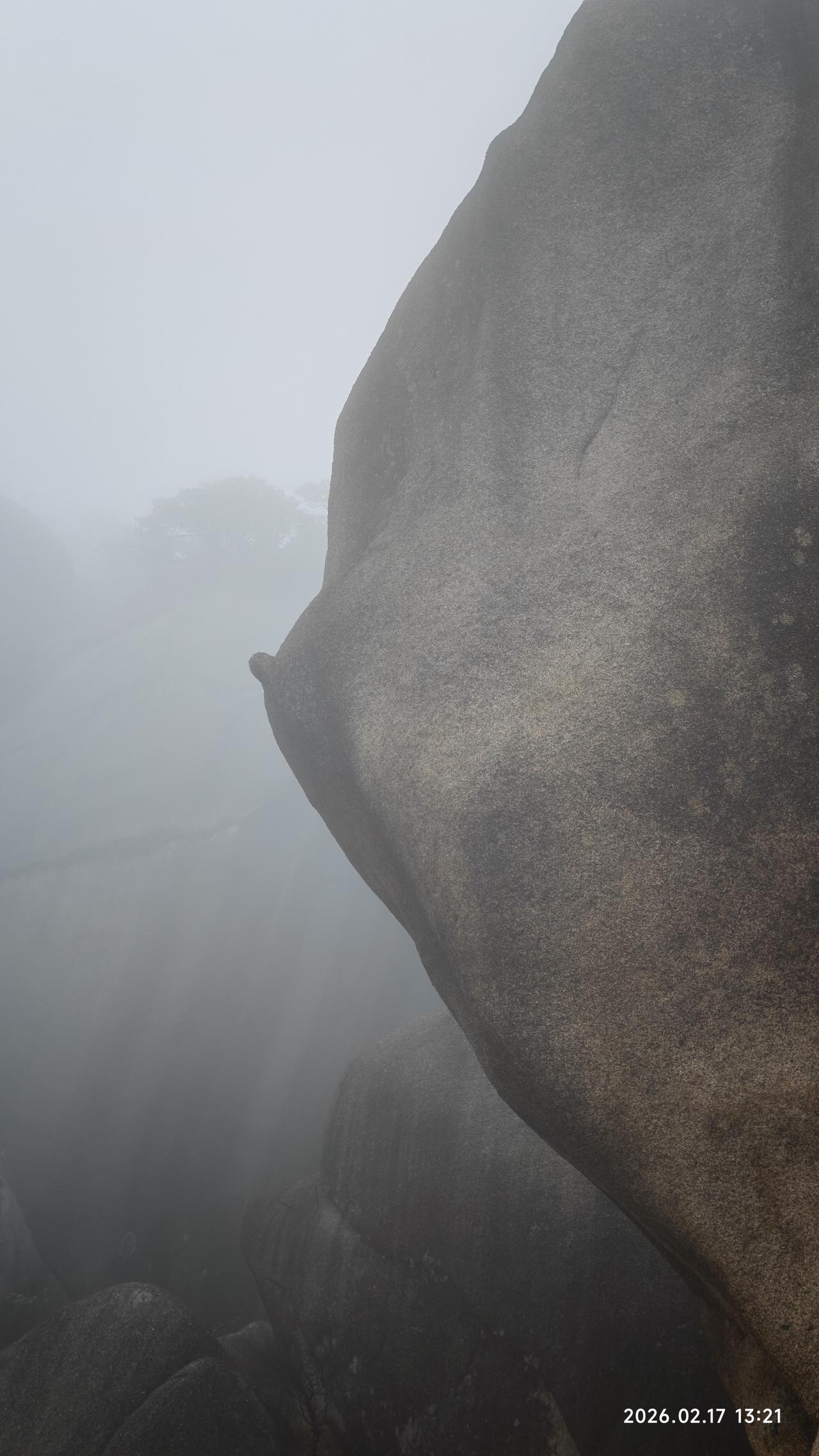 [环国行摄】第三阶段西部篇D4天总第59天:上饶月亮山—羊庄服务区。 1.路线:上饶月亮山—灵山—羊庄服务区。行驶132公里 2.主要景点:月亮山、灵山 3.行程:今天是大年初一,早上起来天虽然还阴着,但昨天晚上基本没下雨。吃了饭马上去爬山。没想到几分钟就上去了。有几个人但不多,天气能见度很高。还不错飞了一会无人机。主要是这个山体是一个长条形,上到山顶很壮观。 月亮山的核心景观是长15米的月亮洞,洞顶平坦如桥,远观似弯月,山体造型独特,宛如桂林象鼻山。 玩了一个多小时下来。抓紧向灵山。10点到达。没想到人太多了。简直是人山人海。我免门票,索道上行75元,下行60元。老婆的联票190元。买票之后到索道站。第一次遇到这么多人,在那个栏杆通道里绕来绕去,差不多一个小时才坐上索道。上去倒是很快。但今天阴天,雾很大。上去之后,雾更大。好在上去时间不长,雾略微小了点。近处的山体勉强能看得着。 灵山是道、佛二教的圣地,被列为“天下第三十三福地”。南宋著名词人辛弃疾,壮志未酬被贬官后曾在上饶隐居20余年,灵山就是他经常去的一座山。王安石、陆游等著名诗人也都曾到访灵山。 灵山以一项颠覆想象的“空中走廊”而名声大噪,整座山装上了自动扶梯,让游客能够轻松地直达高山栈道,创造全国首个“不用爬的真山”。这条总长1236米、垂直提升高度达256米的扶梯,如同一条通天之路,让游客在欣赏美景的同时,也能感受到科技带来的便捷与舒适。 下索道后走了一段时间,雾越来越大。转到山的另一侧之后,更是雾大。几乎什么都看不清。特别是那个观龙台和中华龙脊,几乎是一点也看不到。尽管如此,我们还是上去了,然后到最远处的雄霸天下。也是,一点也看不见。心情非常沮丧。花了300多元,好多东西没看到。不过好在一开始还算可以,多少看见了点东西。 下午4点多,来到索道站。进索道又是半个多小时。山上天气也很冷。很快下到下面。还要抓紧赶路,目标是武夷山。但赶到武夷山就太晚了,夜行半个多小时,最后在羊庄服务区露营,条件非常好,停车场非常大。主要是没什么大车。 4.住宿:羊庄服务区露营 5.路况:好 6.天气:阴,大雾