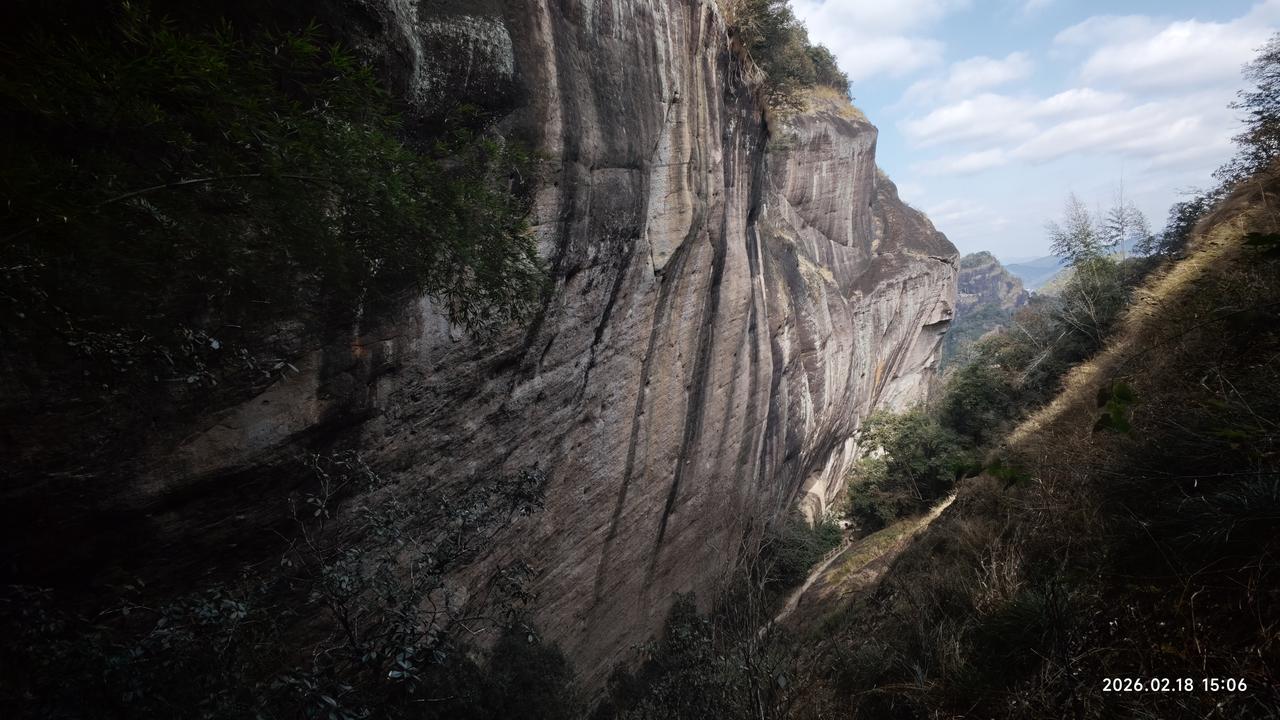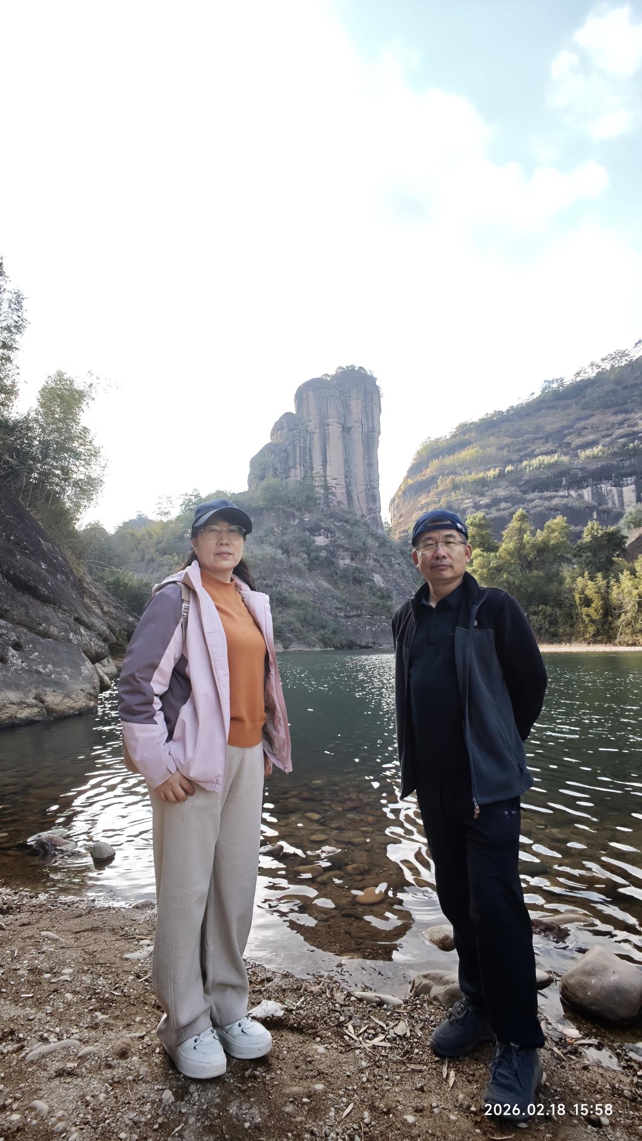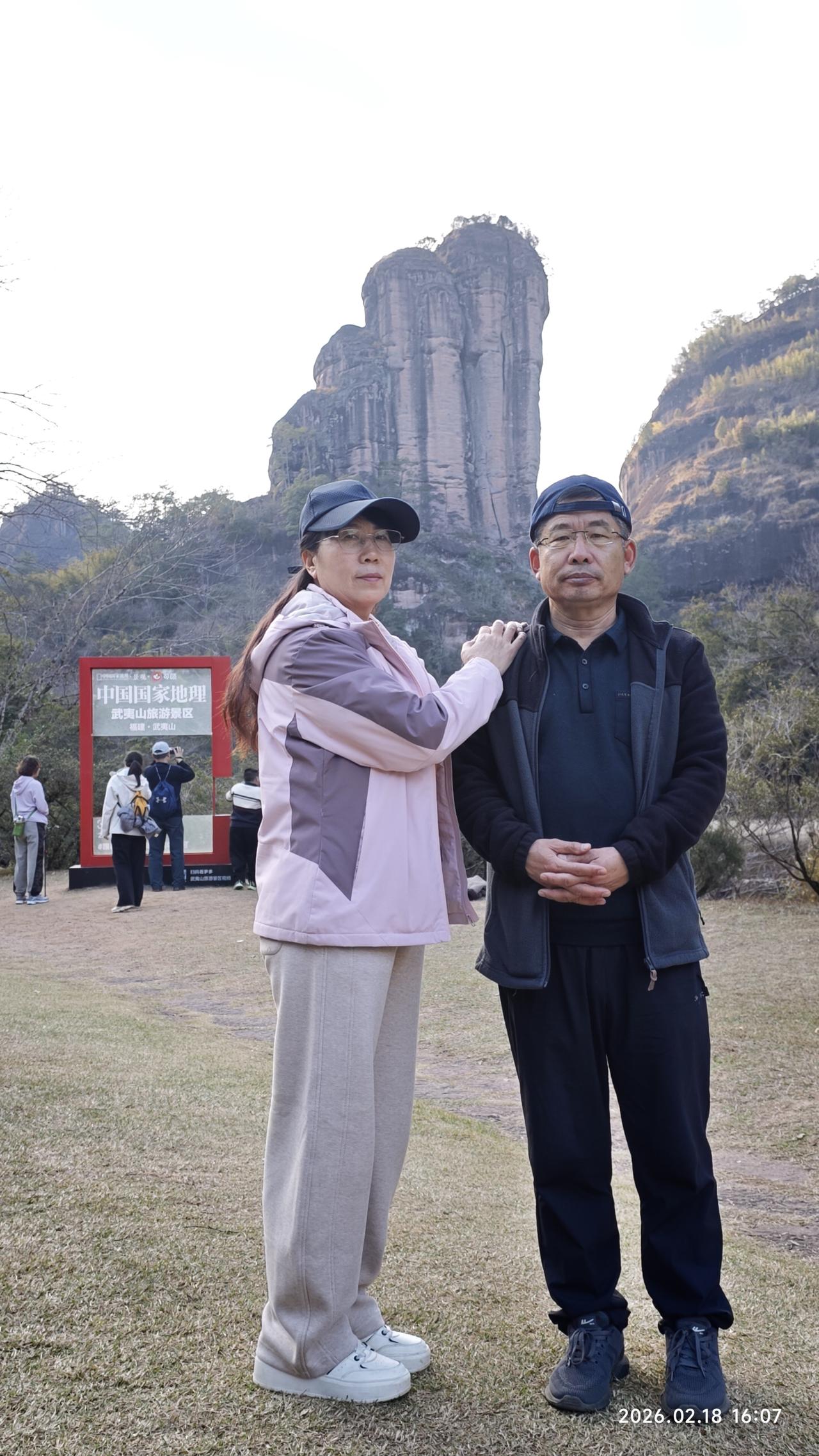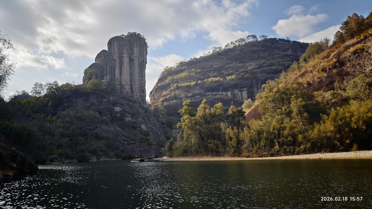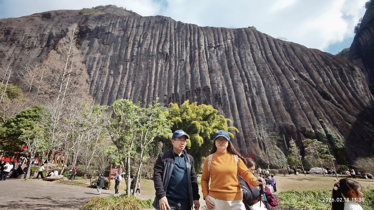 [环国行摄】第三阶段西部篇D5天总第60天:羊庄服务区—南平。 1.路线:羊庄服务区—武夷山—南平。行驶99公里 2.主要景点:下梅古村,武夷山风景区,南平水之亭公园。 3.行程: 早上出发,先到不远处的下梅古村。人不多,请了个导游。才10块钱。领着我们转了一圈。不过没什么特色。也就是两三个大院,典型的南方的那种结构。看完之后返回,路过武夷山景区。我觉得既然来了,一定要进去。早就想着来,今天天气又好,景区又免门票。为什么不进呢? 早就知道这里景色平平,但既然来了,老婆没来过,虽然春节人多,但还是不愿意放弃这个机会,就随着人流进去了。没人只需要70元的车费。我们先到天游峰,上山上到半截,一个平台上人非常多。排了半天队,入口之后不远,队伍突然停了下来。我们干脆放弃登顶。因为之前我上去过,感觉没什么太好的景色。后来从山下看山上,半个小时之后队伍还是没有动。看来和堵车一样,堵死了。很庆幸我们没有上去。 在山下看那个晒布岩,在阳光的照射下非常的壮观。主要在天游峰下转了转,之后原路返回,坐车到虎啸岩,没想到这里挺高的,走路也很远。不过,景色还可以。特别是那个玉女峰,还是值得一看的。之前坐过九曲溪漂流,景色也很平常,照出相来也不好看,也不好照相。但今天来到美女峰下的河岸边,可以随意的拍照。 今天收获不小。转完之后就快4点了。大红袍那里是不去了,抓紧出发,到南平火车站打卡。之后到南平市区的一个水之厅公园露营地,这里有个房车营地不大,但条件还可以。还能洗热水澡,淋浴间非常豪华,马桶坐垫是热的,洗澡间还有热风。非常干净整洁。 晚上7点多,停车场下面的水之厅公园举办音乐喷泉。场面非常壮观。但天气非常寒冷,冻得瑟瑟发抖。 4.住宿:南平市水之厅公园房车营地 5.路况:好 6.天气:多云,5-15度