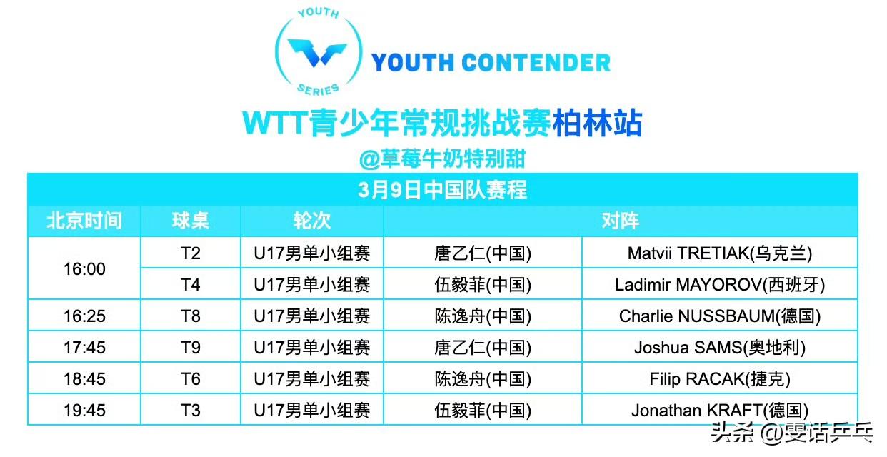 一、U17男单小组赛:3.9 1.唐乙仁🇨🇳3-0Matvii TRETIA